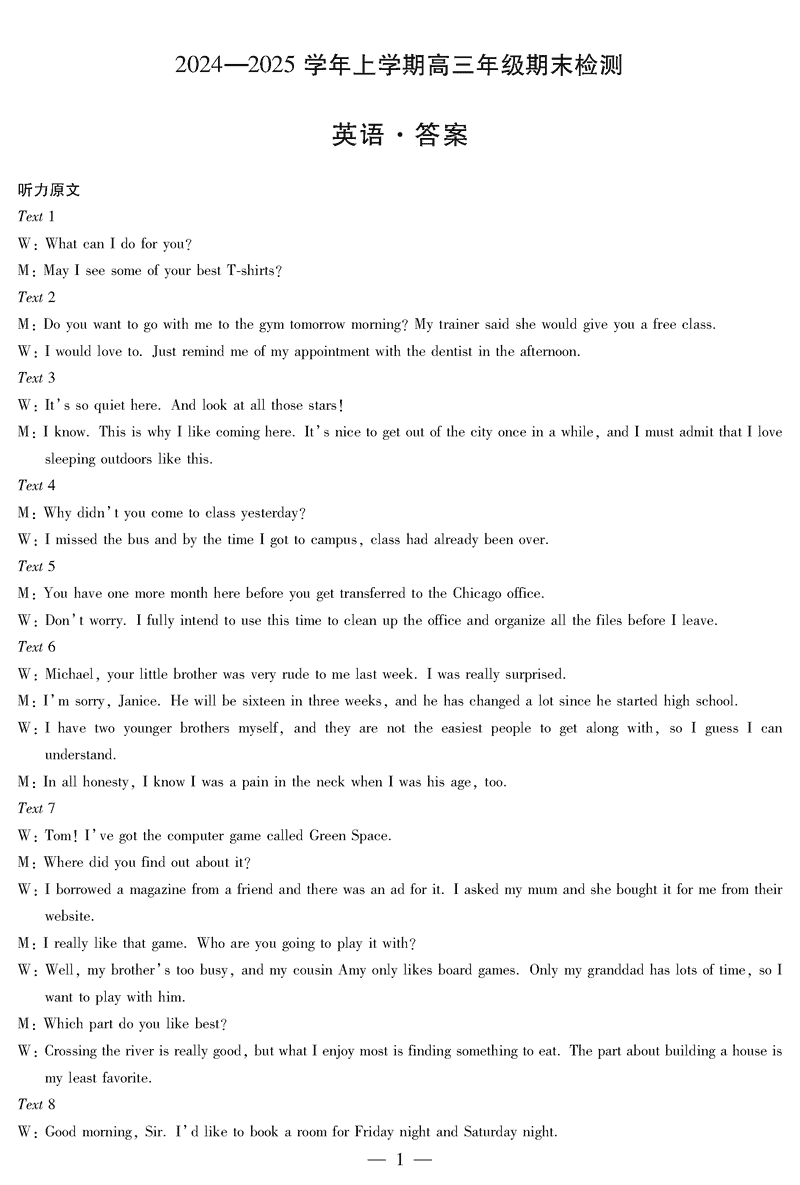 安徽天一大联考2025届高三上学期1月期末检测英语试题及答案