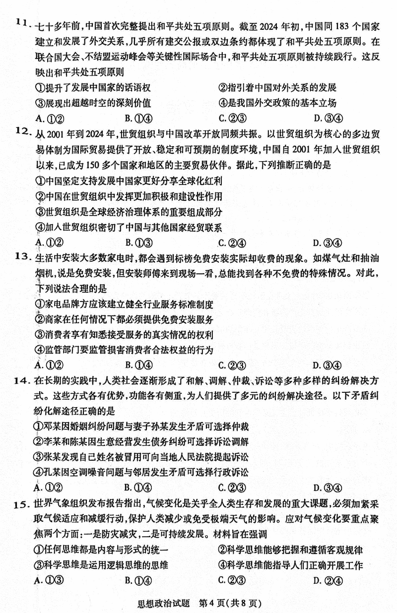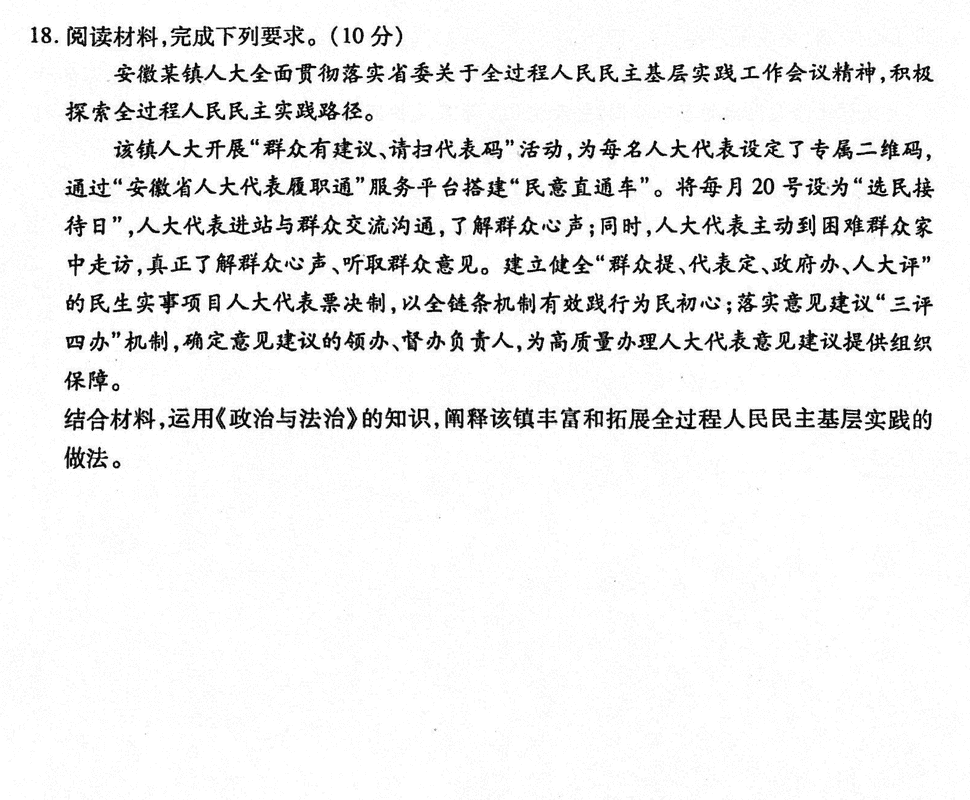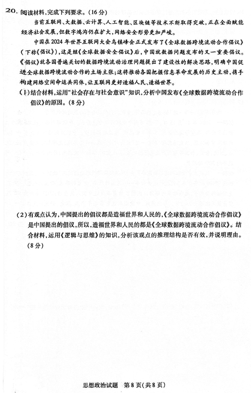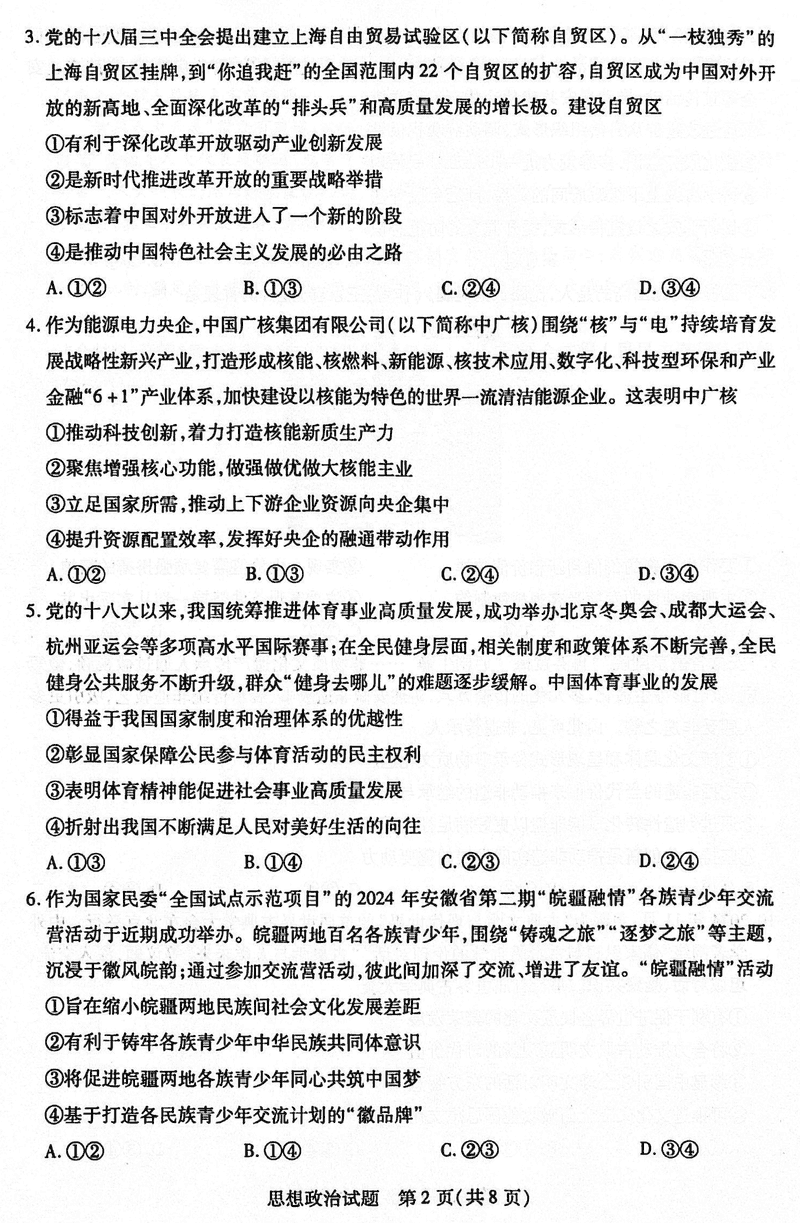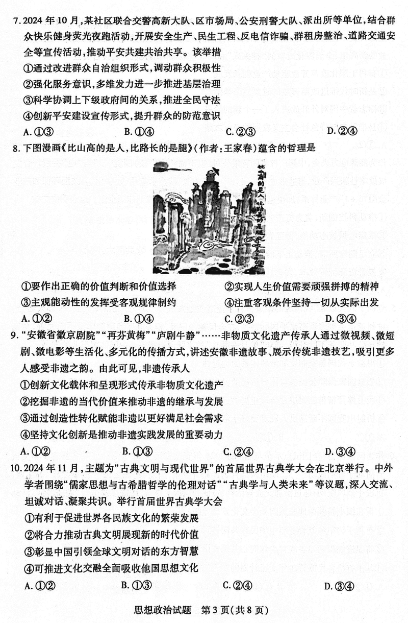 安徽天一大联考2025届高三上学期1月期末检测政治试题及答案