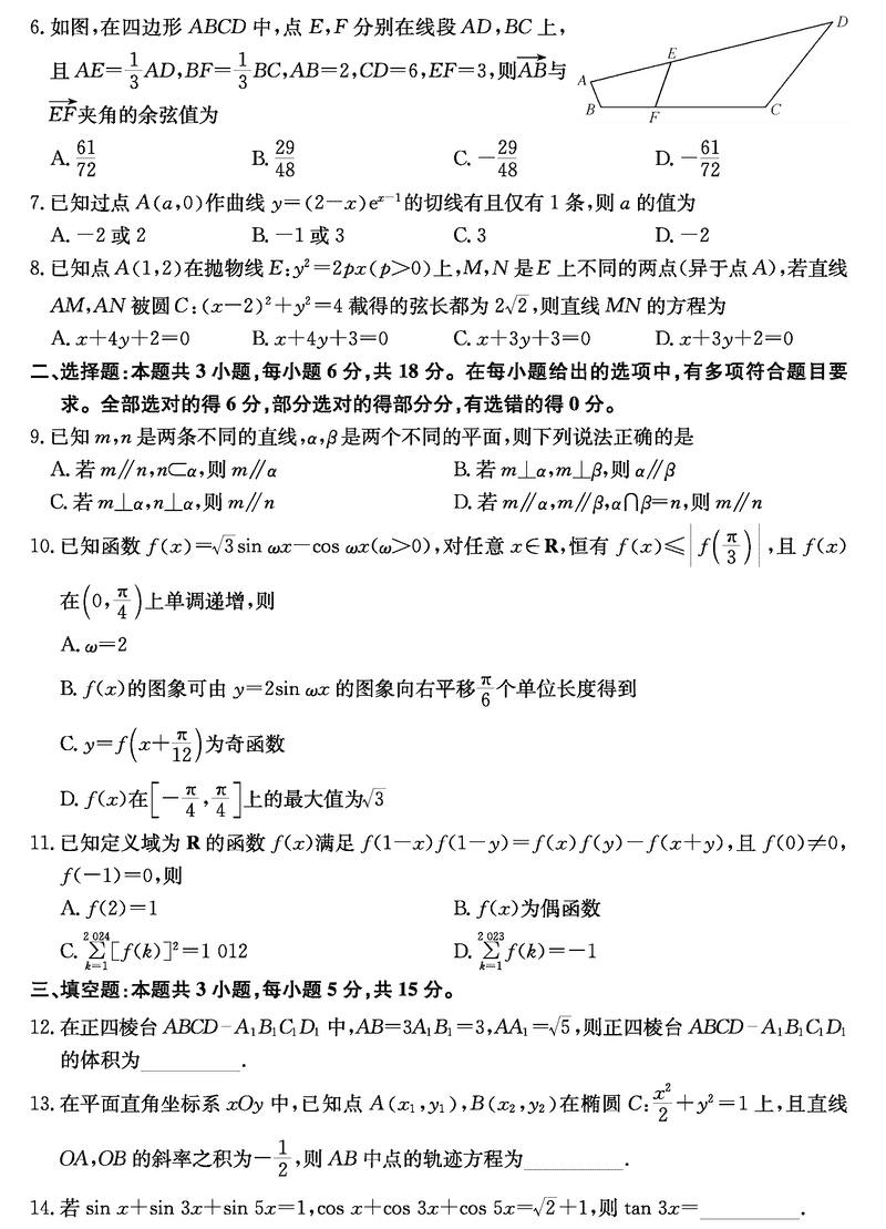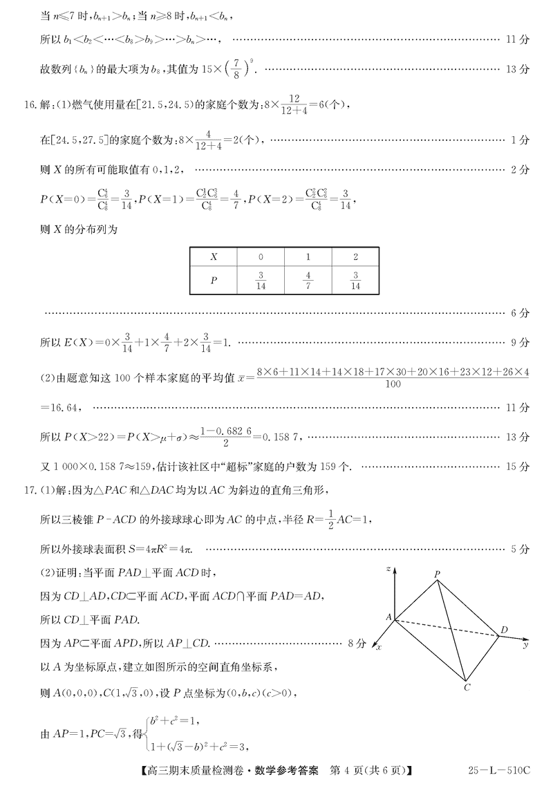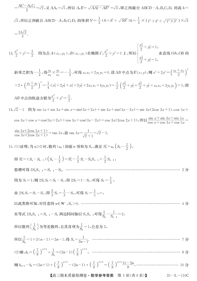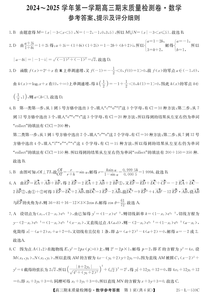 山西三晋卓越联盟2025届高三上学期期末数学试题及答案