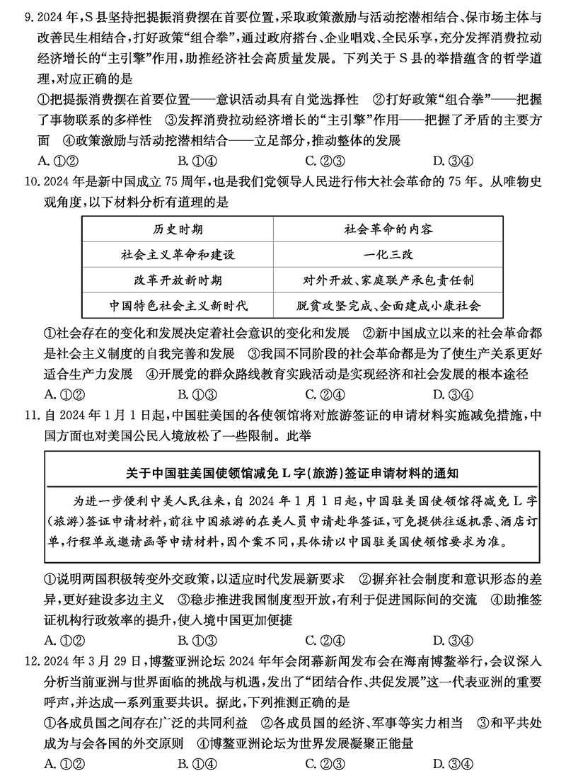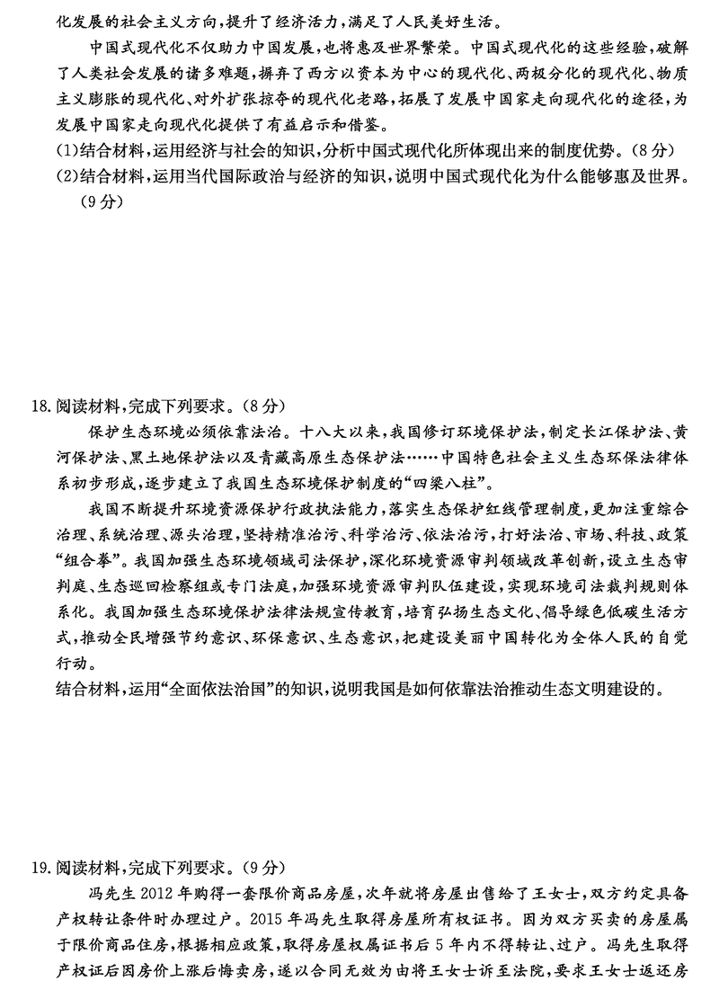 山西三晋卓越联盟2025届高三上学期期末政治试题及答案