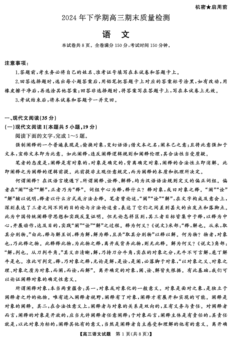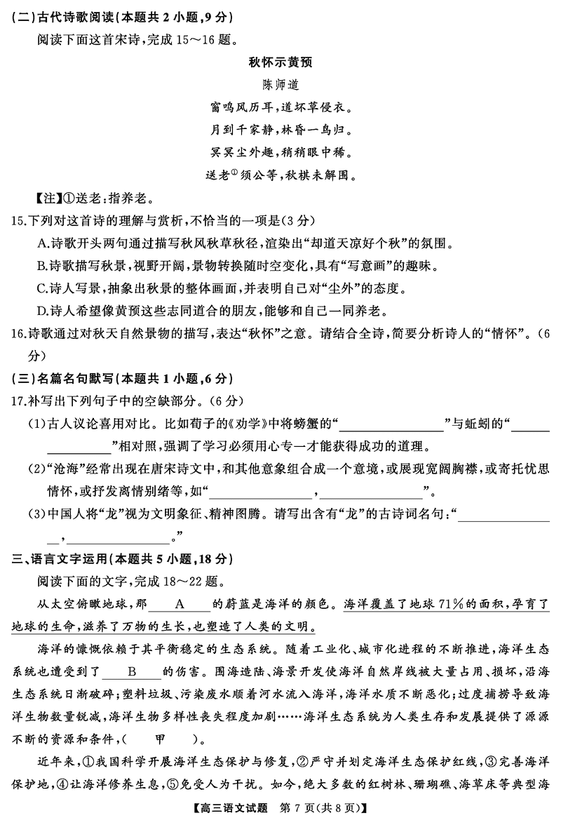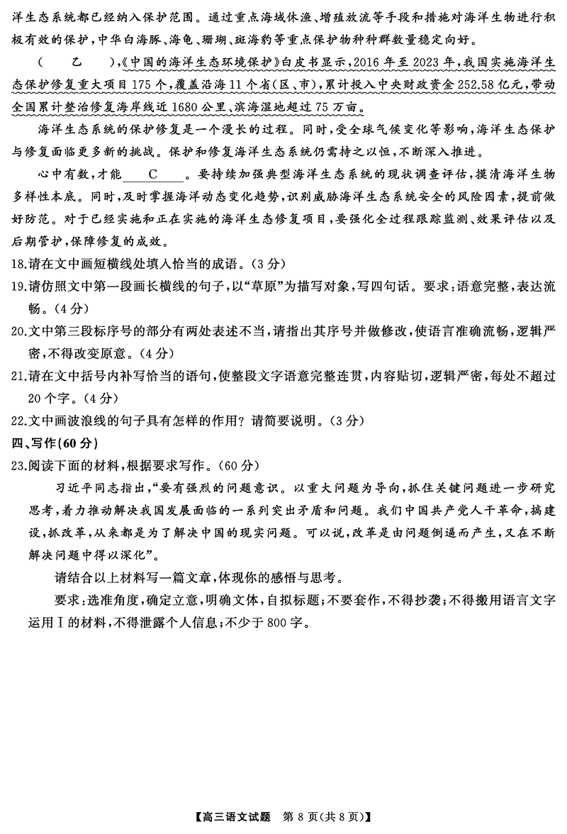 湖南五市2025届高三1月期末质量检测语文试题及答案 时间:2025-01-27 湖南 语文试题 湖南五市2025届高三1月期末质量检测语文考试已于近日开考,为方便考生考后及时查看考试情况,查漏补缺、弥补不足,本文整理了试题答案解析相关信息! 汇总:湖南五市2025届高三1月期末质量检测试题及答案汇总 语文试题及答案解析