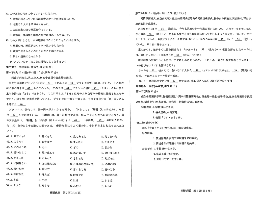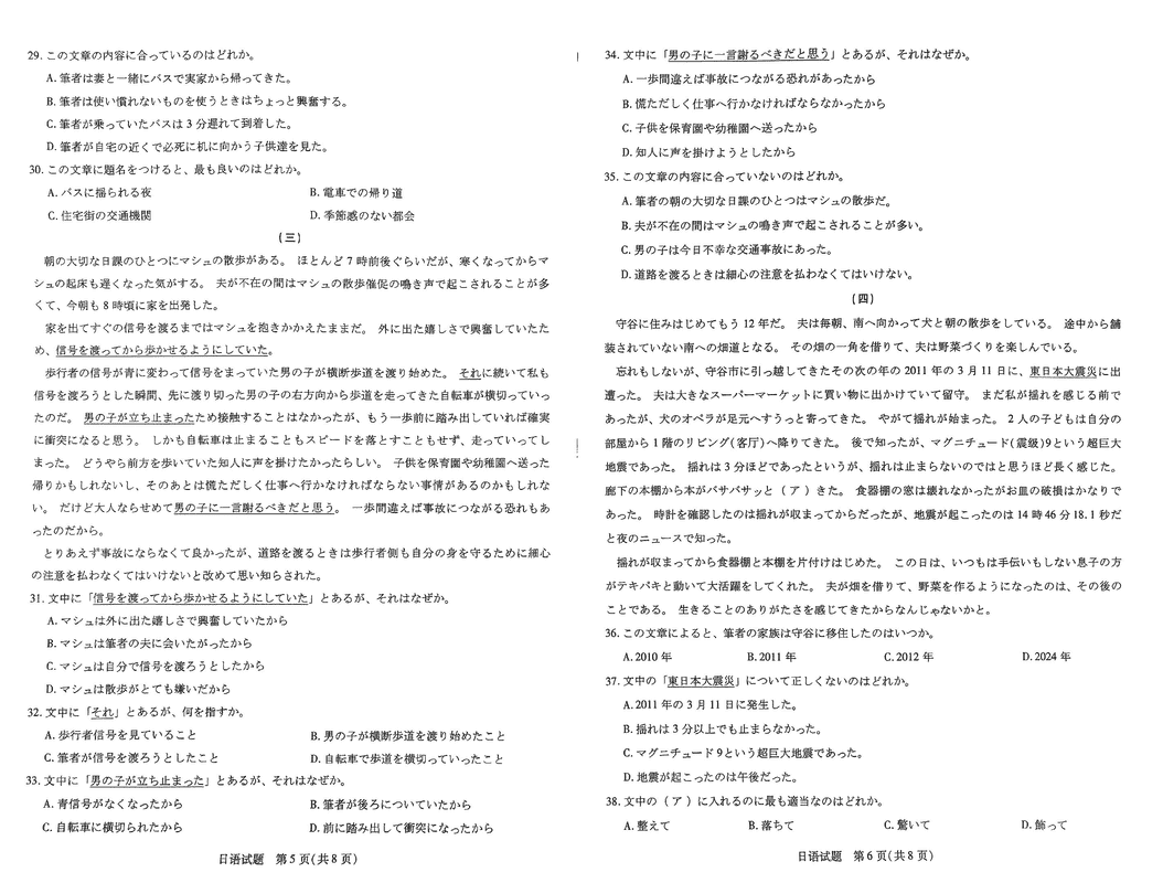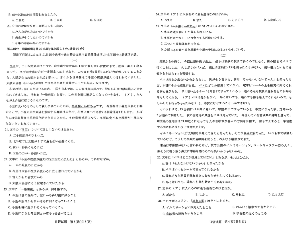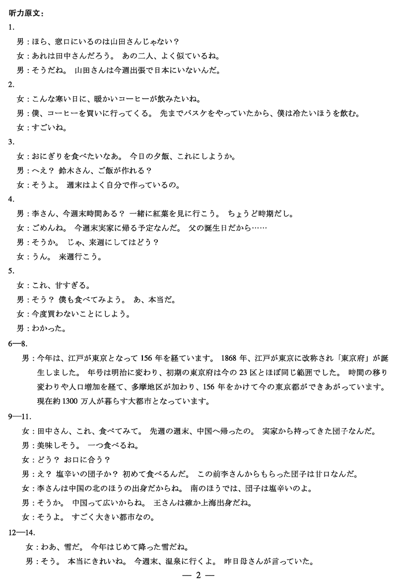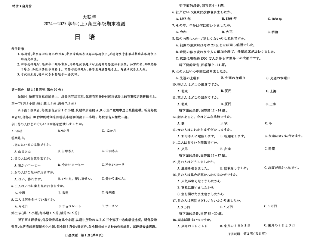 河南天一大联考2025年高三上学期1月期末日语试题及答案