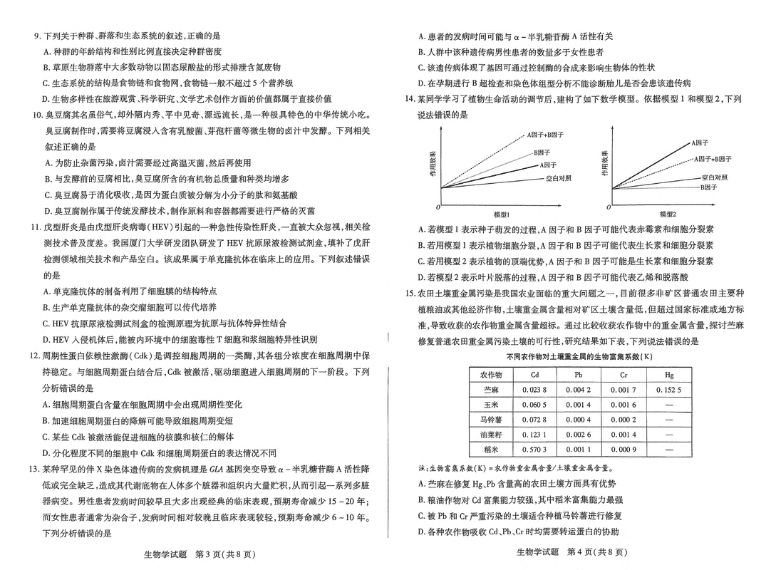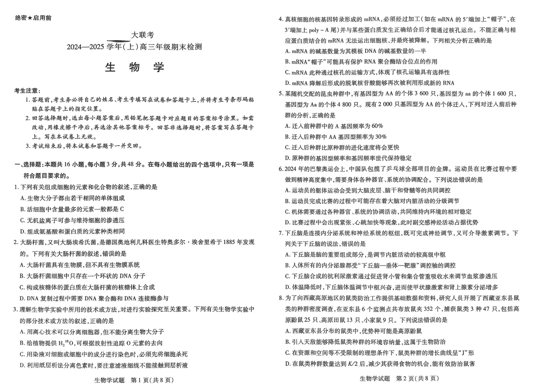 河南天一大联考2025年高三上学期1月期末生物试题及答案