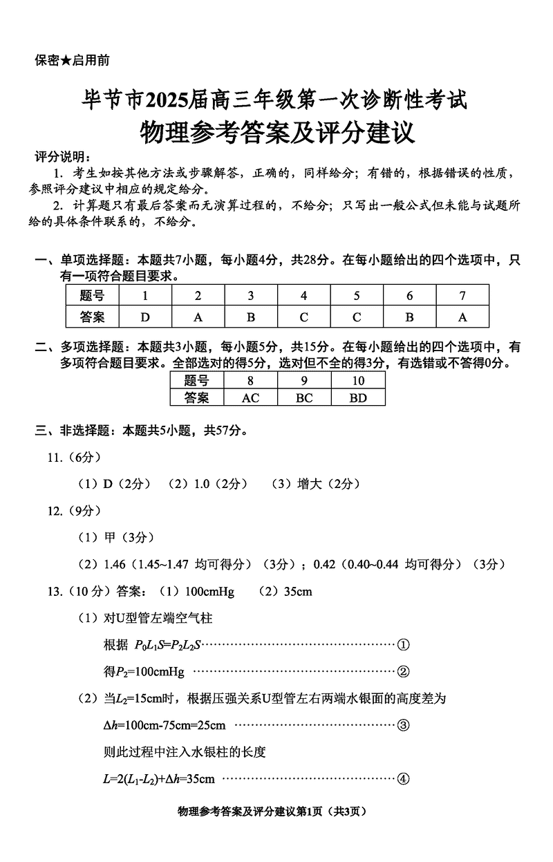 毕节一诊2025届高三上学期第一次诊断物理考试已于近日开考,为方便考生考后及时查看考试情况,查漏补缺、弥补不足,本文整理了试题答案解析相关信息!