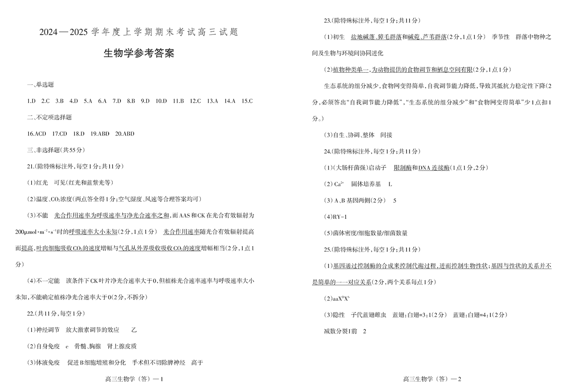辽宁省省重点中学协作校2025届高三上学期1月期末生物考试已于近日开考,为方便考生考后及时查看考试情况,查漏补缺、弥补不足,本文整理了试题答案解析相关信息!