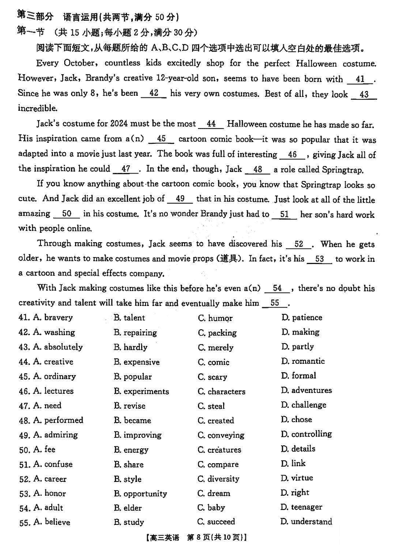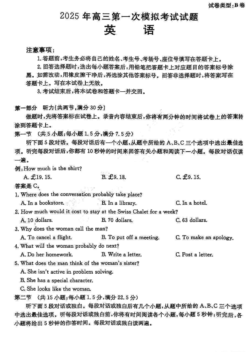 晋城一模2025年高三年第一次模拟英语试题及答案 时间:2025-02-02 山西 英语试题 晋城一模2025年高三年第一次模拟英语考试已于近日开考,为方便考生考后及时查看考试情况,查漏补缺、弥补不足,本文整理了试题答案解析相关信息! 汇总:晋城一模2025年高三年第一次模拟考试试题及答案汇总 英语试题及答案解析