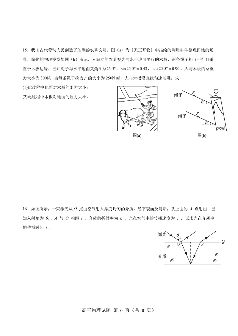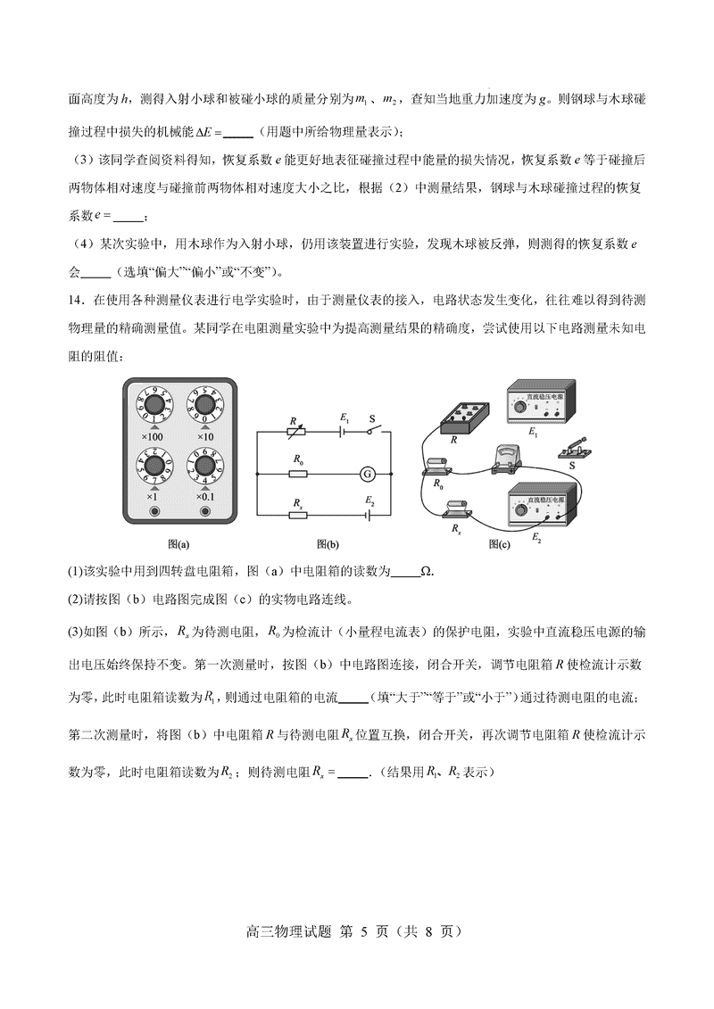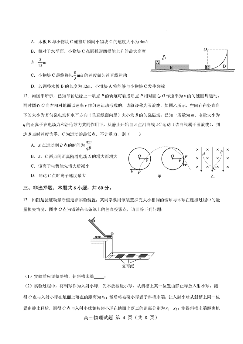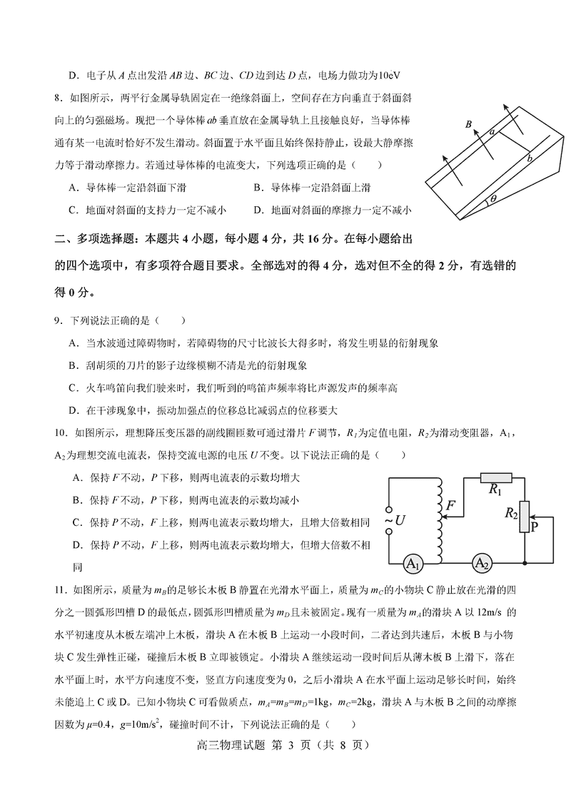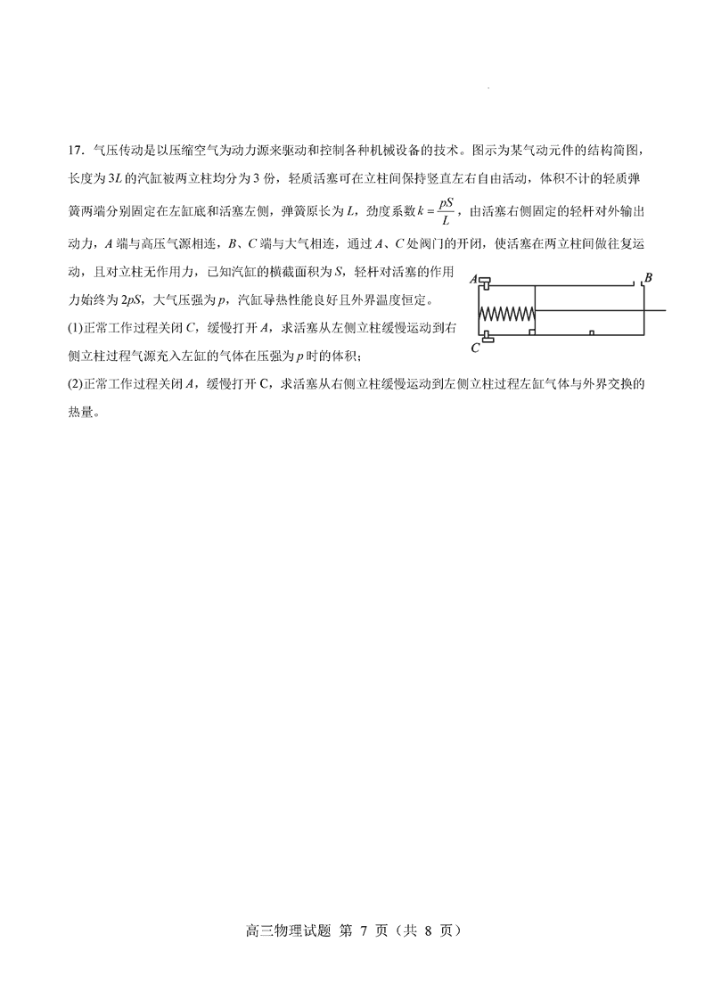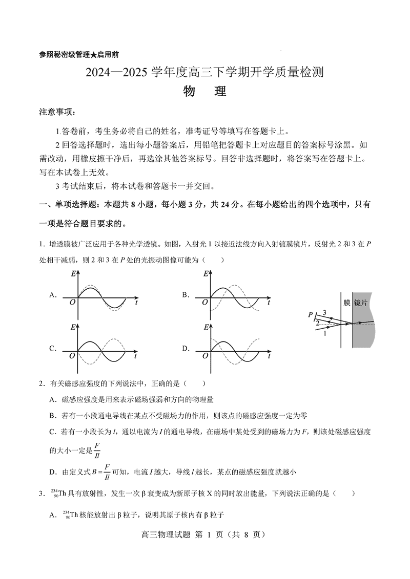 淄博实验中学2024-2025学年高三下学期开学物理试题及答案
