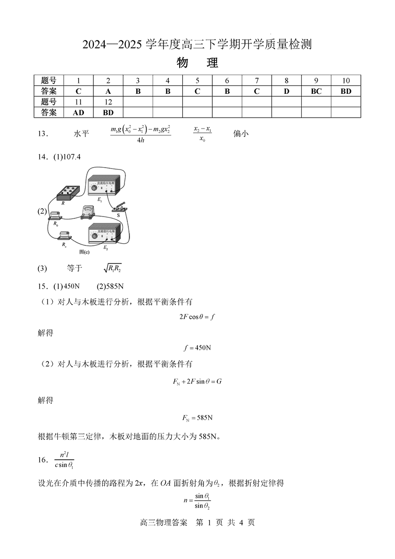 淄博实验中学2024-2025学年高三下学期开学物理考试已于近日开考,为方便考生考后及时查看考试情况,查漏补缺、弥补不足,本文整理了试题答案解析相关信息!