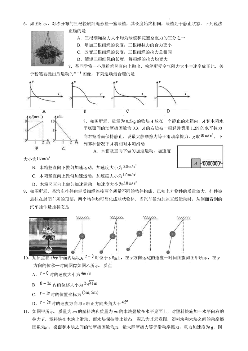 苏州2024-2025学年高一上学期1月期末学业阳光指标调研物理试题及答案