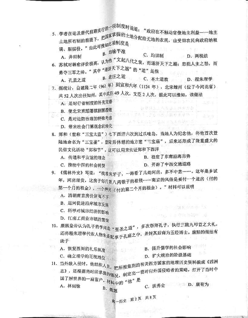 苏州2024-2025学年高一上学期1月期末学业阳光指标调研历史试题及答案
