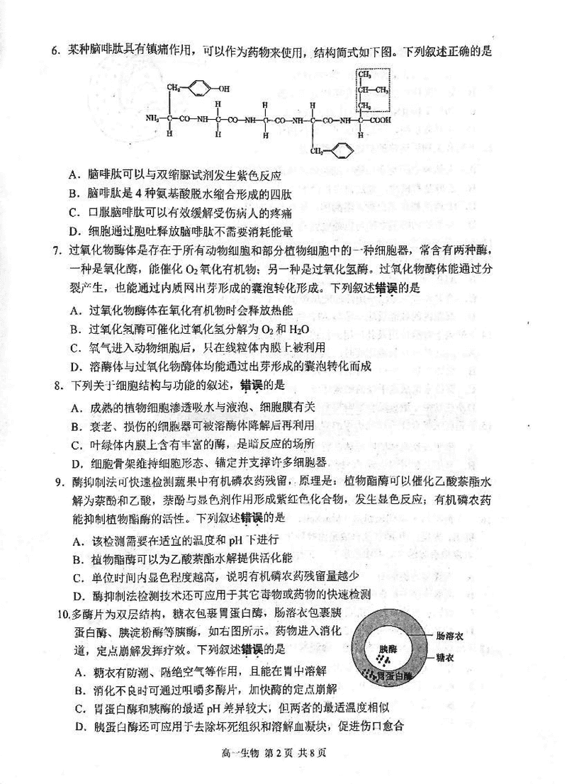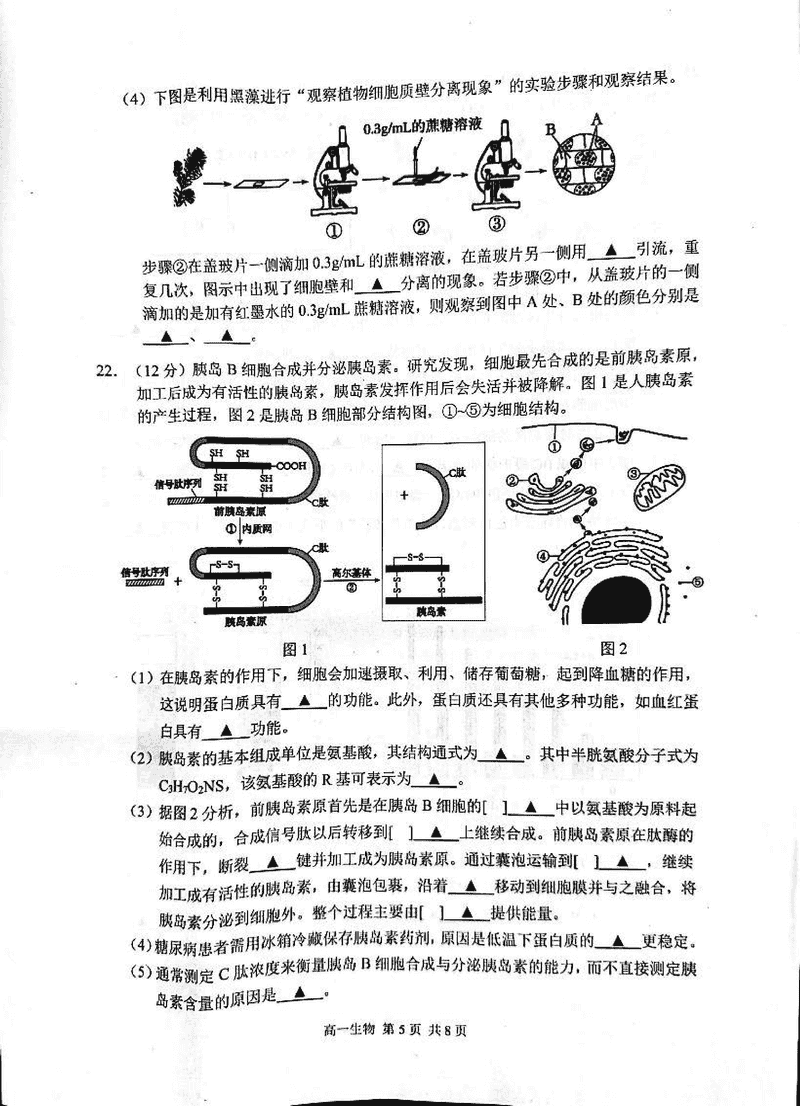 苏州2024-2025学年高一上学期1月期末学业阳光指标调研生物试题及答案