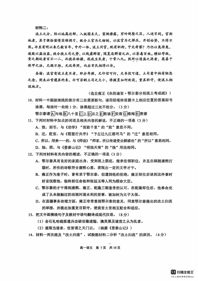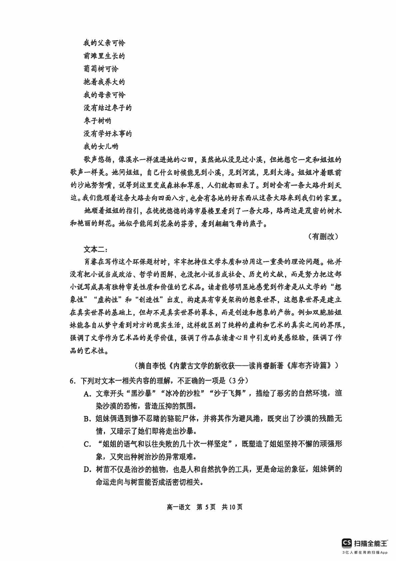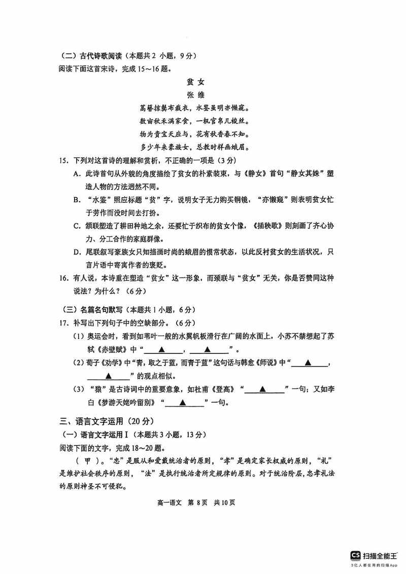 苏州2024-2025学年高一上学期1月期末学业阳光指标调研语文试题及答案