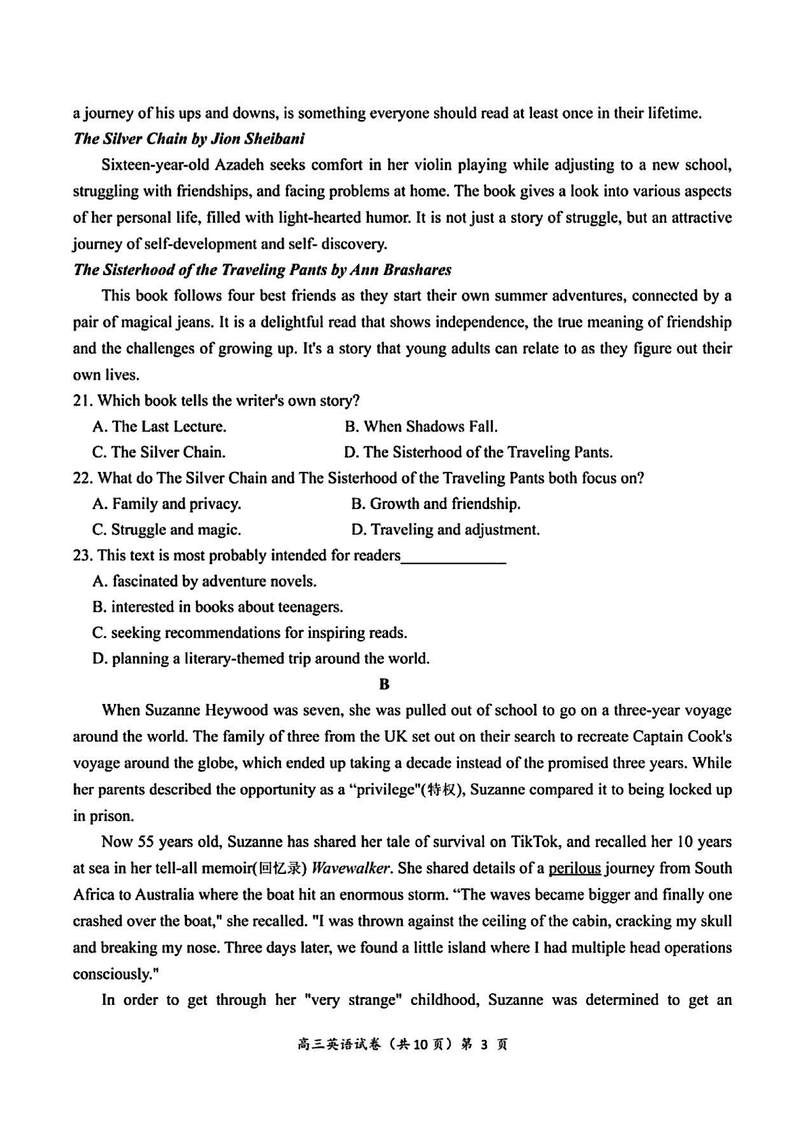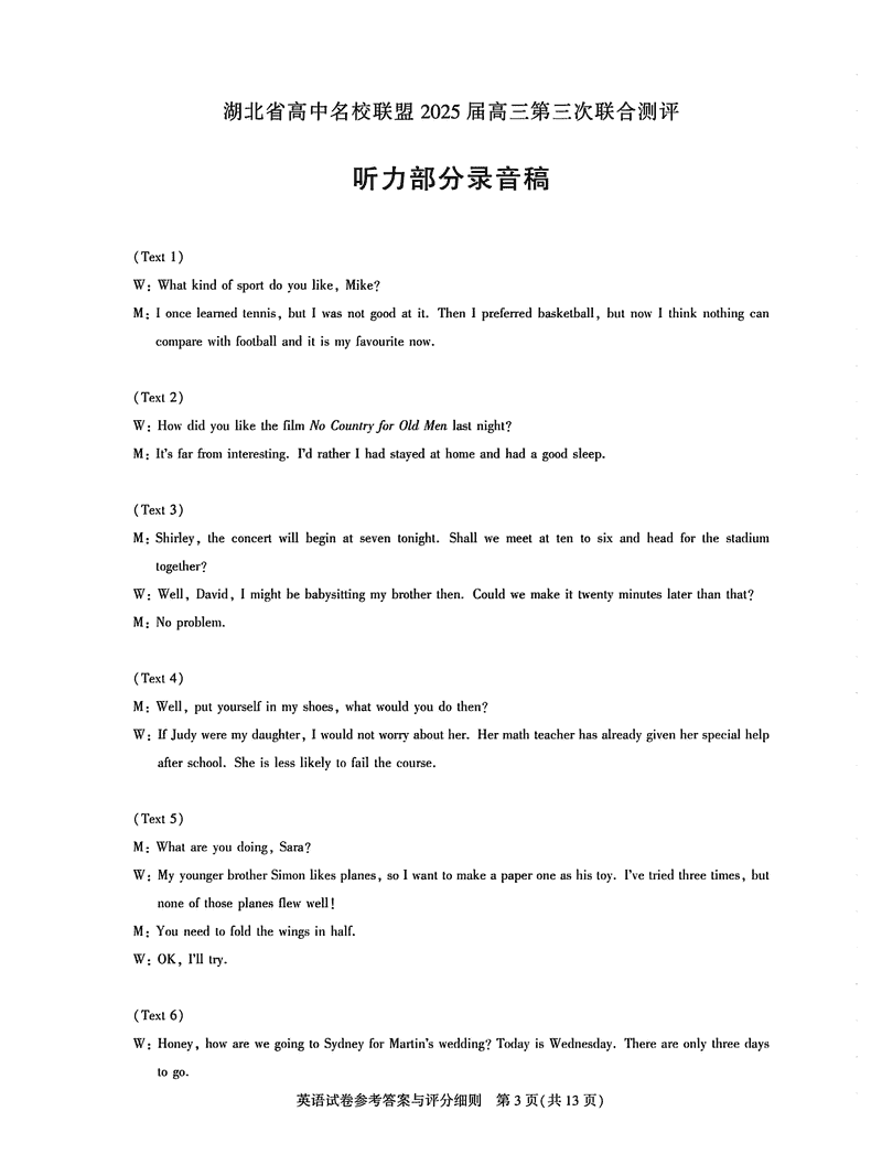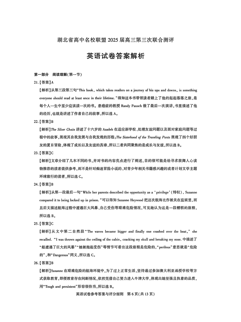 湖北圆创高中名校联盟2025届高三第三次联合测评英语试题及答案