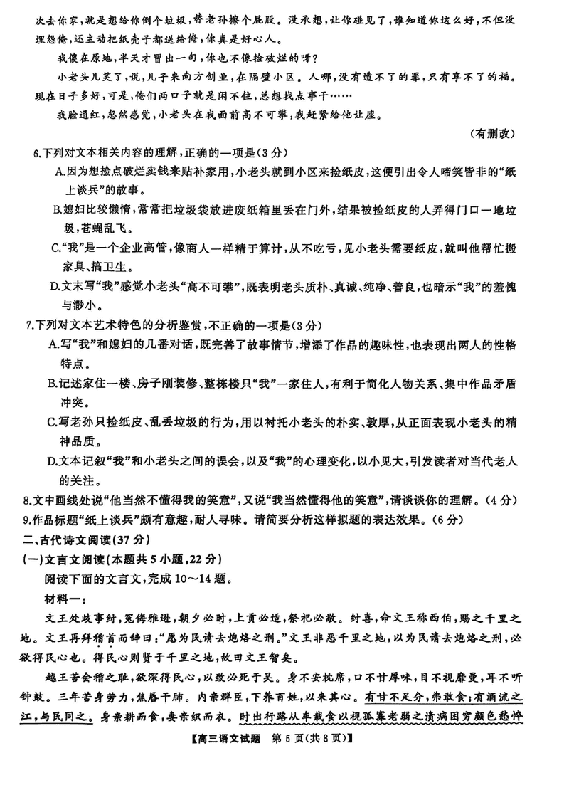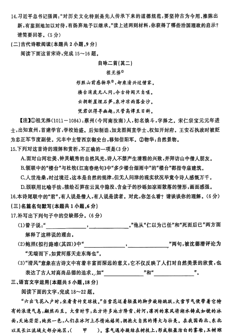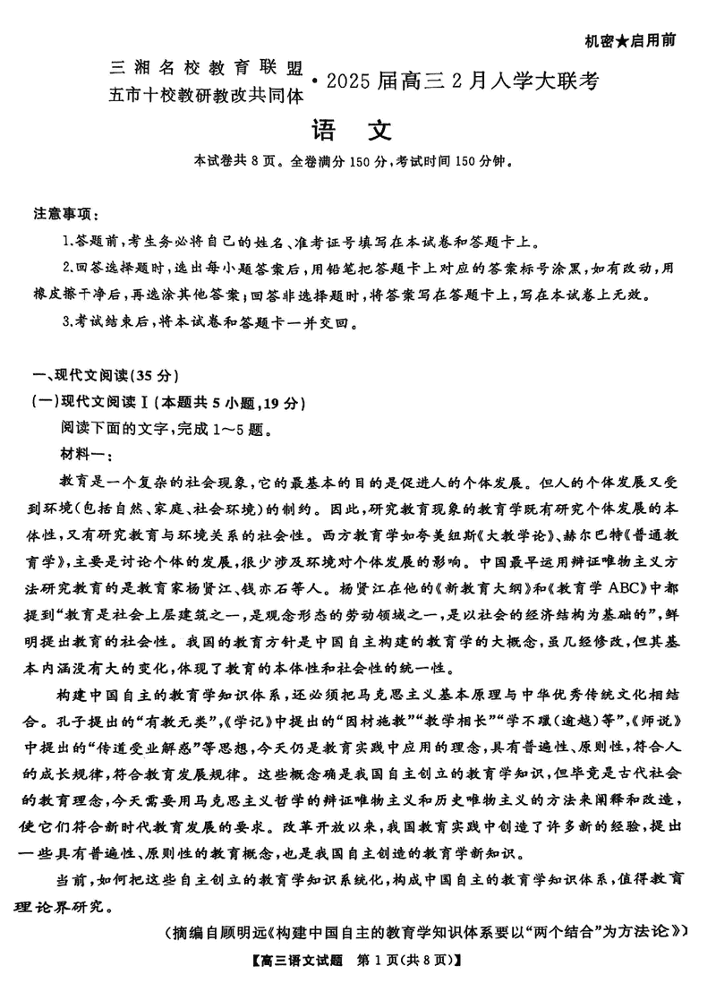 2025届三湘名校教育联盟五市十校教研教改共同体高三下2月入学大联考语文试题及答案