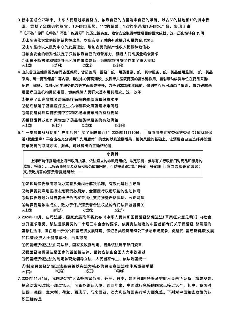 山东 文综试题
