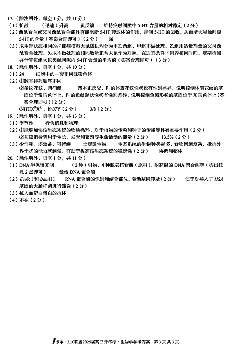 安徽省A10联盟2025届高三下学期开年考生物考试已于近日开考,为方便考生考后及时查看考试情况,查漏补缺、弥补不足,本文整理了试题答案解析相关信息!