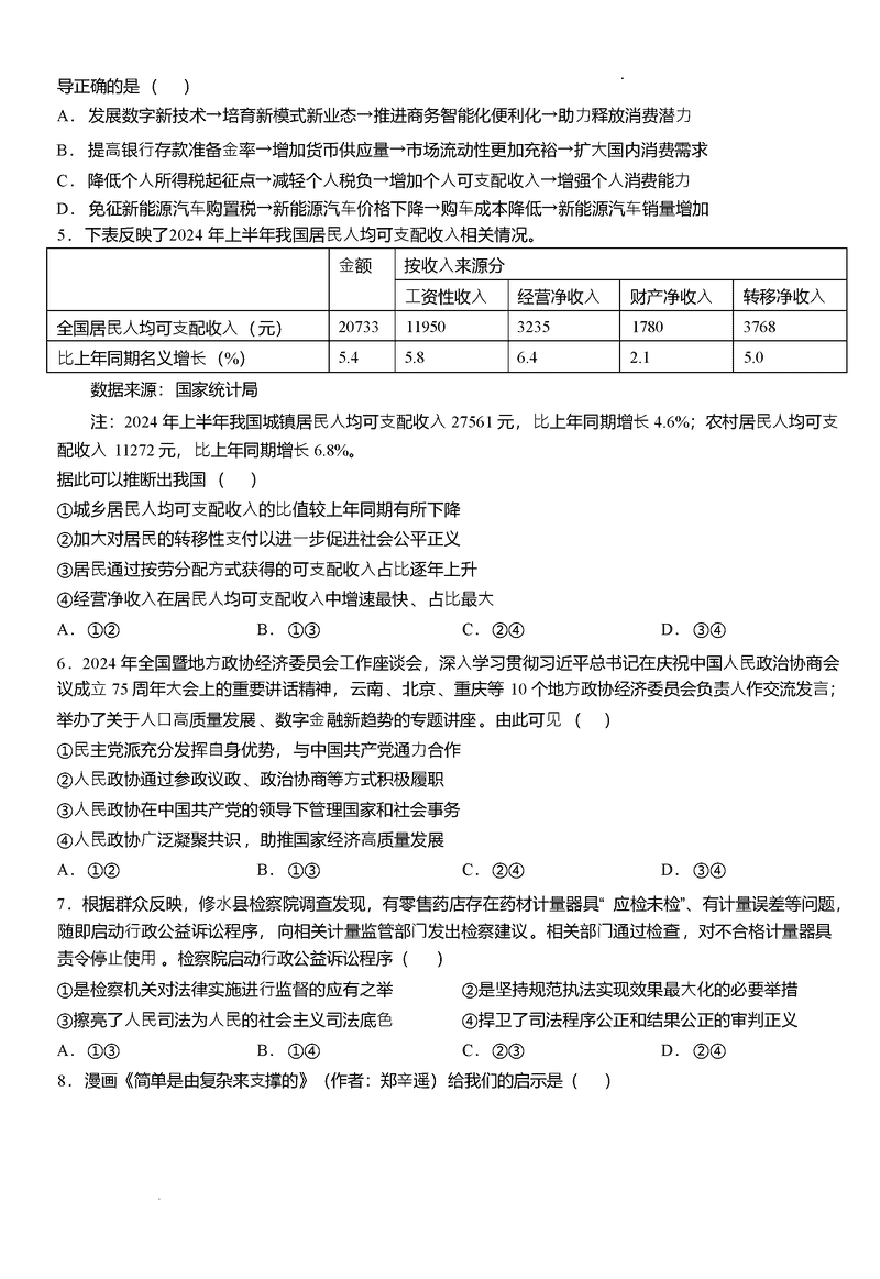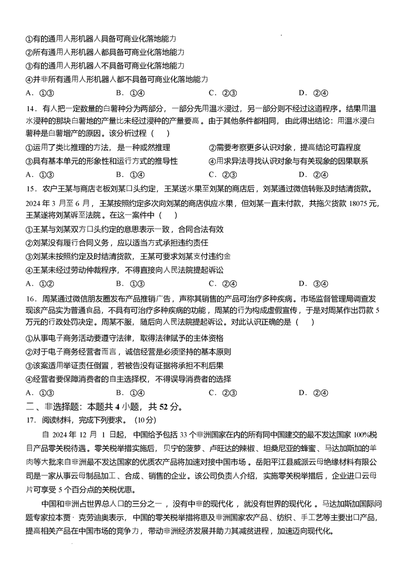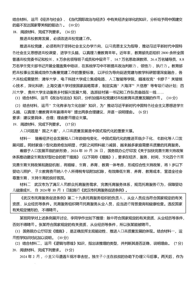 2025届广西上进联考高三下学期2月开学政治试题及答案
