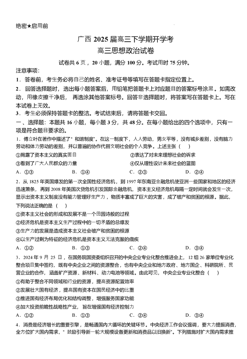 2025届广西上进联考高三下学期2月开学政治考试已于近日开考,为方便考生考后及时查看考试情况,查漏补缺、弥补不足,本文整理了试题答案解析相关信息!