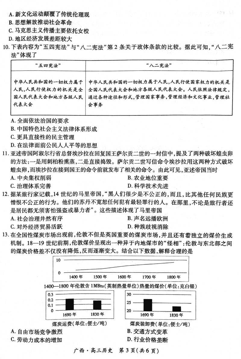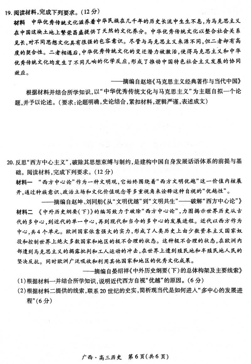 2025届广西上进联考高三下学期2月开学历史试题及答案