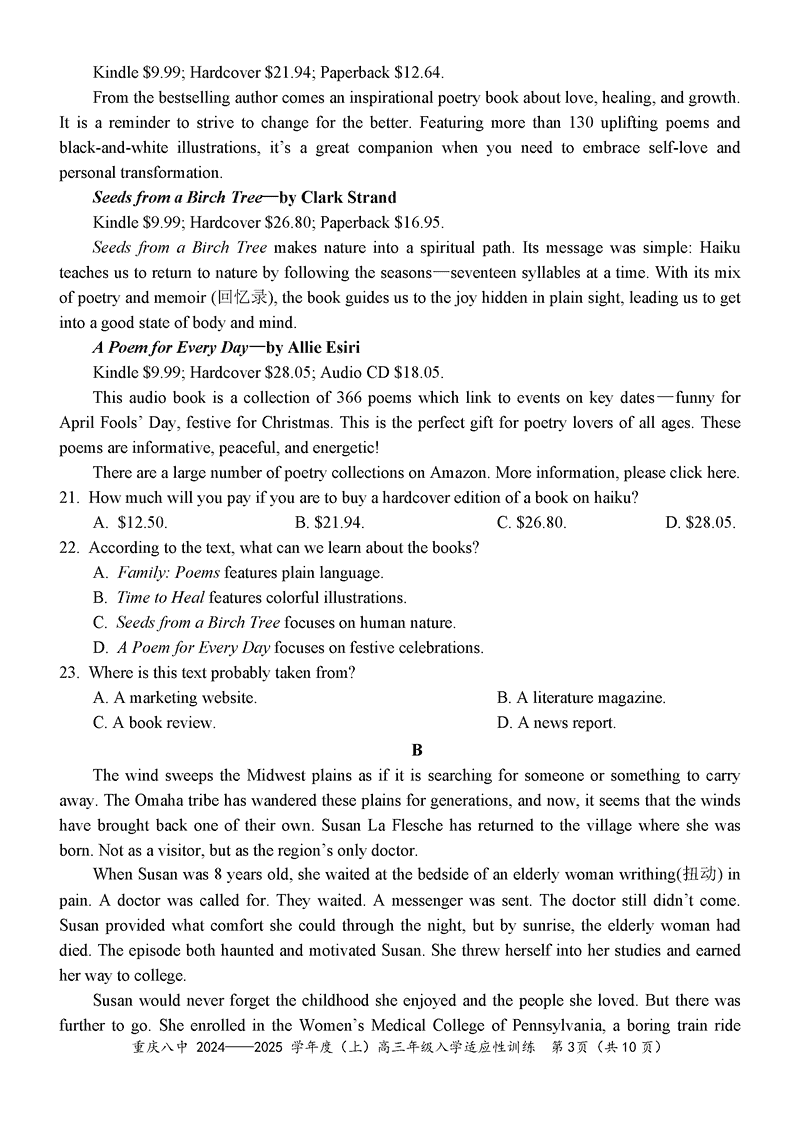 重庆 英语试题