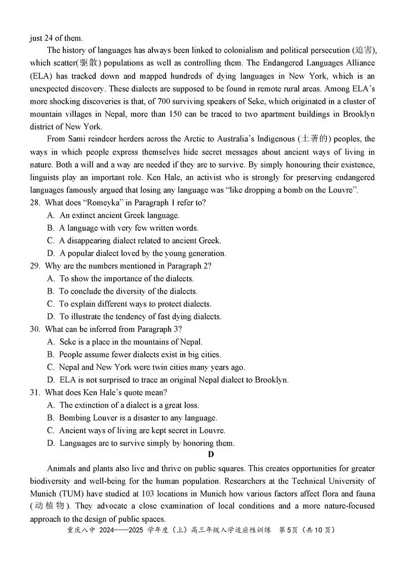 重庆八中2024-2025学年度高三下入学英语考试已于近日开考,为方便考生考后及时查看考试情况,查漏补缺、弥补不足,本文整理了试题答案解析相关信息!