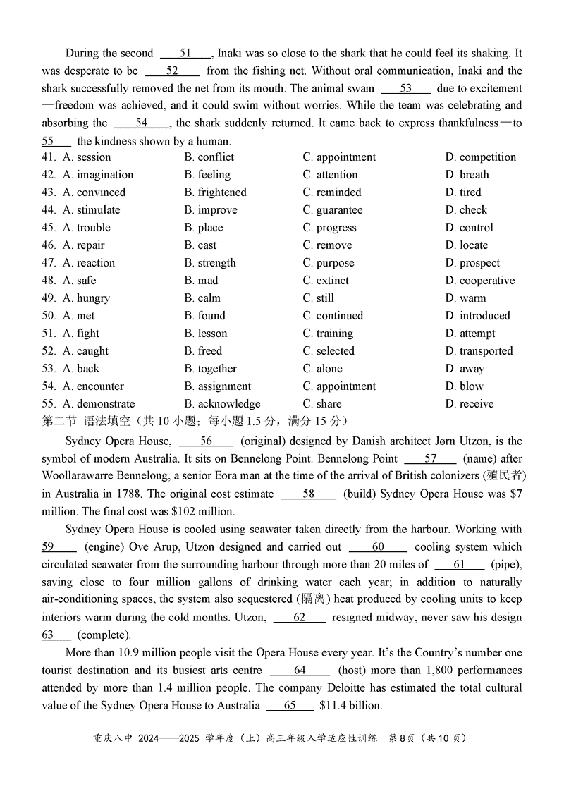 重庆八中2024-2025学年度高三下入学英语试题及答案