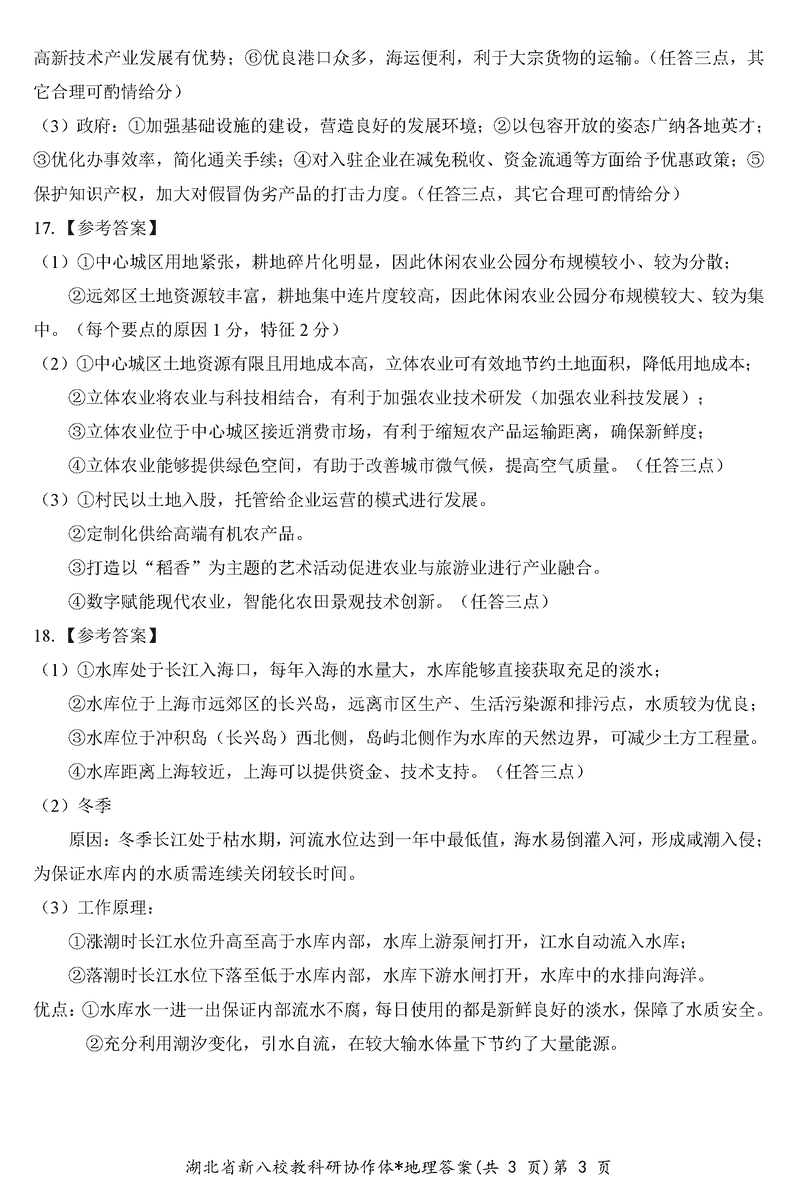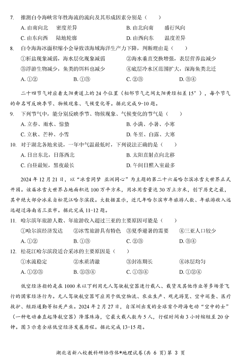 2025年湖北省新八校协作体高三2月联考地理试题及答案