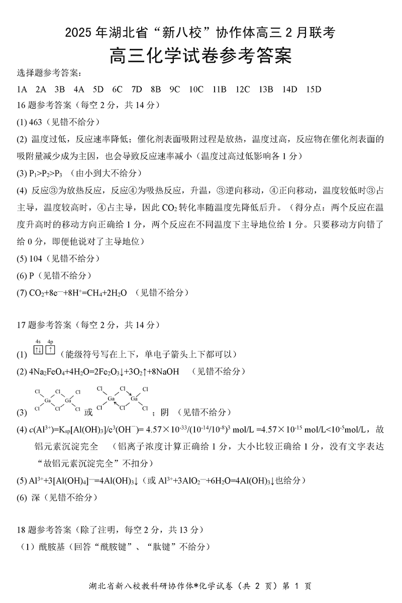 2025年湖北省新八校协作体高三2月联考化学考试已于近日开考,为方便考生考后及时查看考试情况,查漏补缺、弥补不足,本文整理了试题答案解析相关信息!