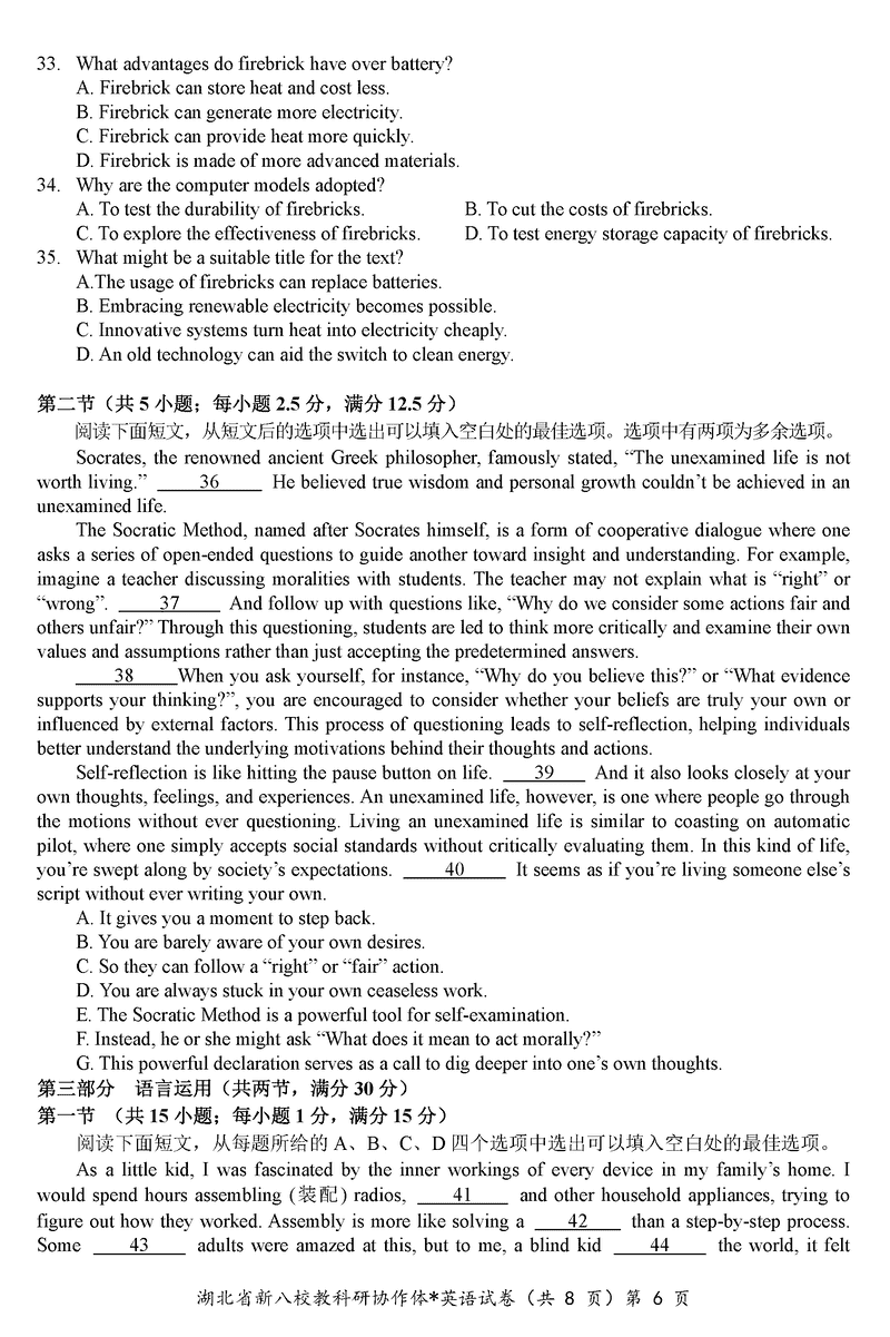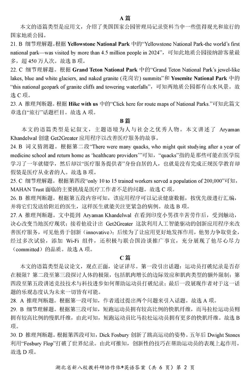 2025年湖北省新八校协作体高三2月联考英语考试已于近日开考,为方便考生考后及时查看考试情况,查漏补缺、弥补不足,本文整理了试题答案解析相关信息!