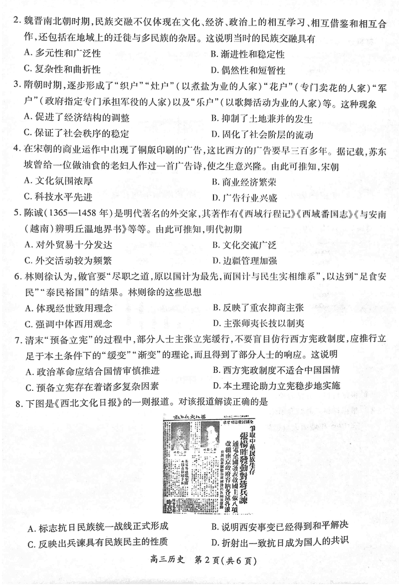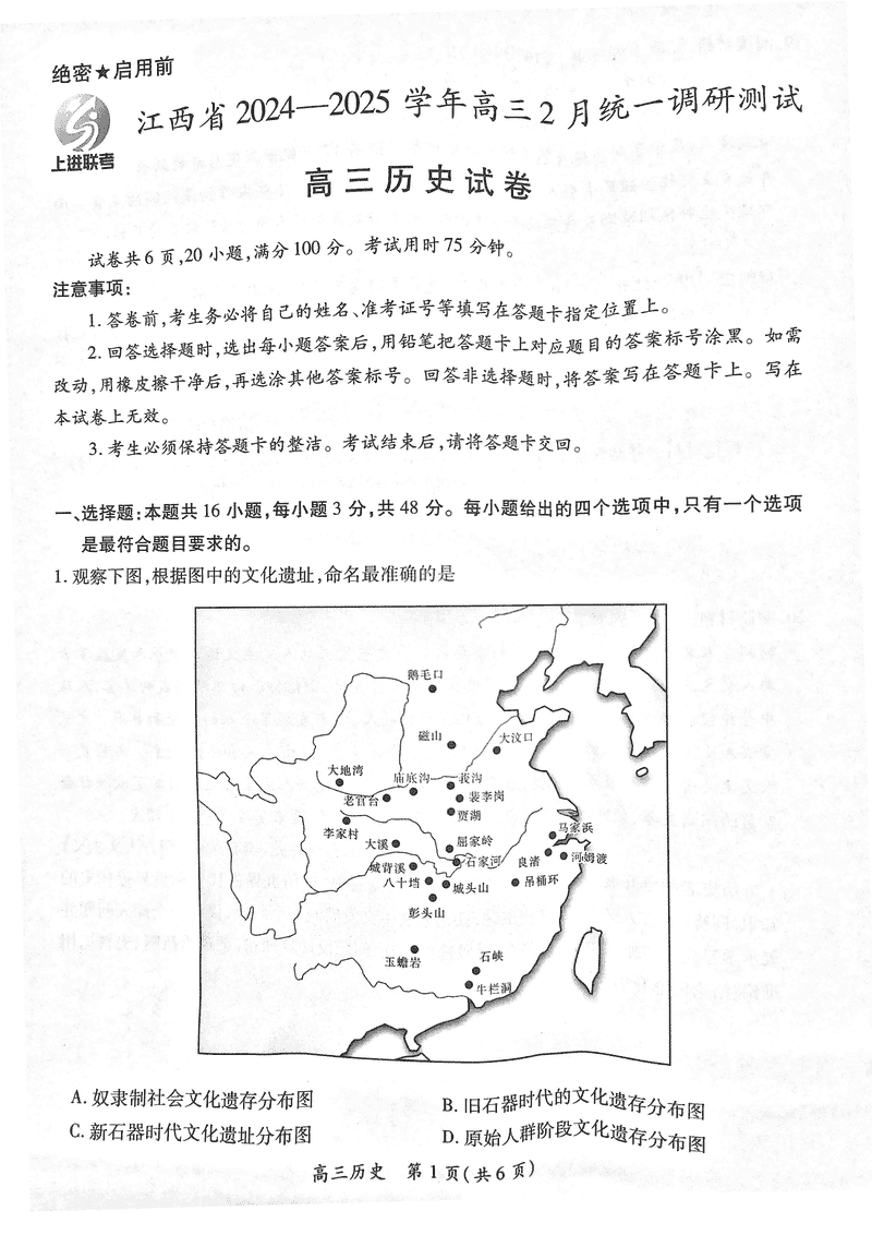 江西上进联考2024-2025学年高三下学期2月统测历史考试已于近日开考,为方便考生考后及时查看考试情况,查漏补缺、弥补不足,本文整理了试题答案解析相关信息!