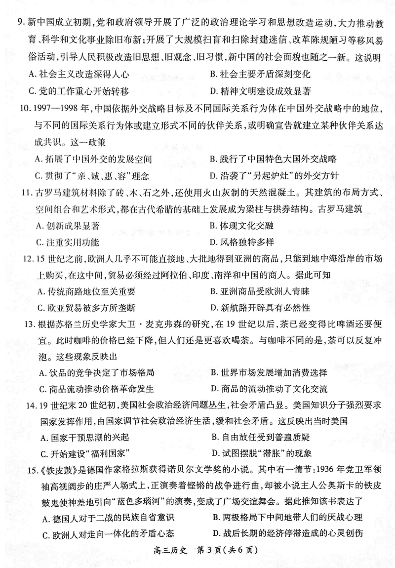 江西上进联考2024-2025学年高三下学期2月统测历史试题及答案