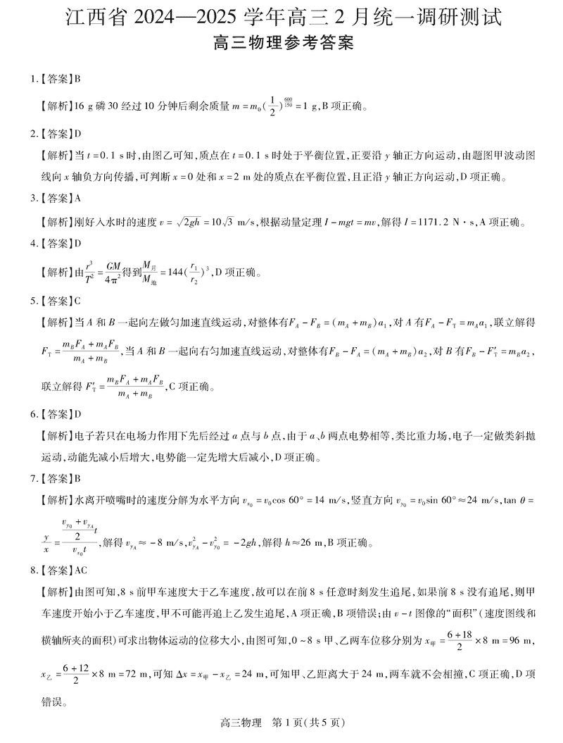 江西上进联考2024-2025学年高三下学期2月统测物理考试已于近日开考,为方便考生考后及时查看考试情况,查漏补缺、弥补不足,本文整理了试题答案解析相关信息!