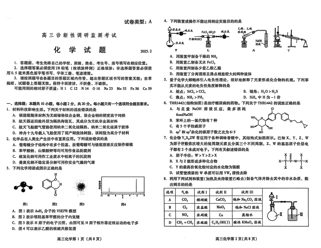 山东潍坊2025届高三2月诊断性调研监测化学试题及答案