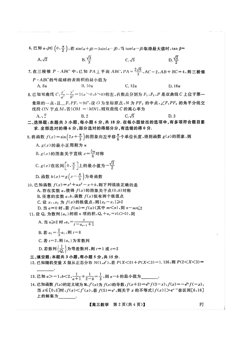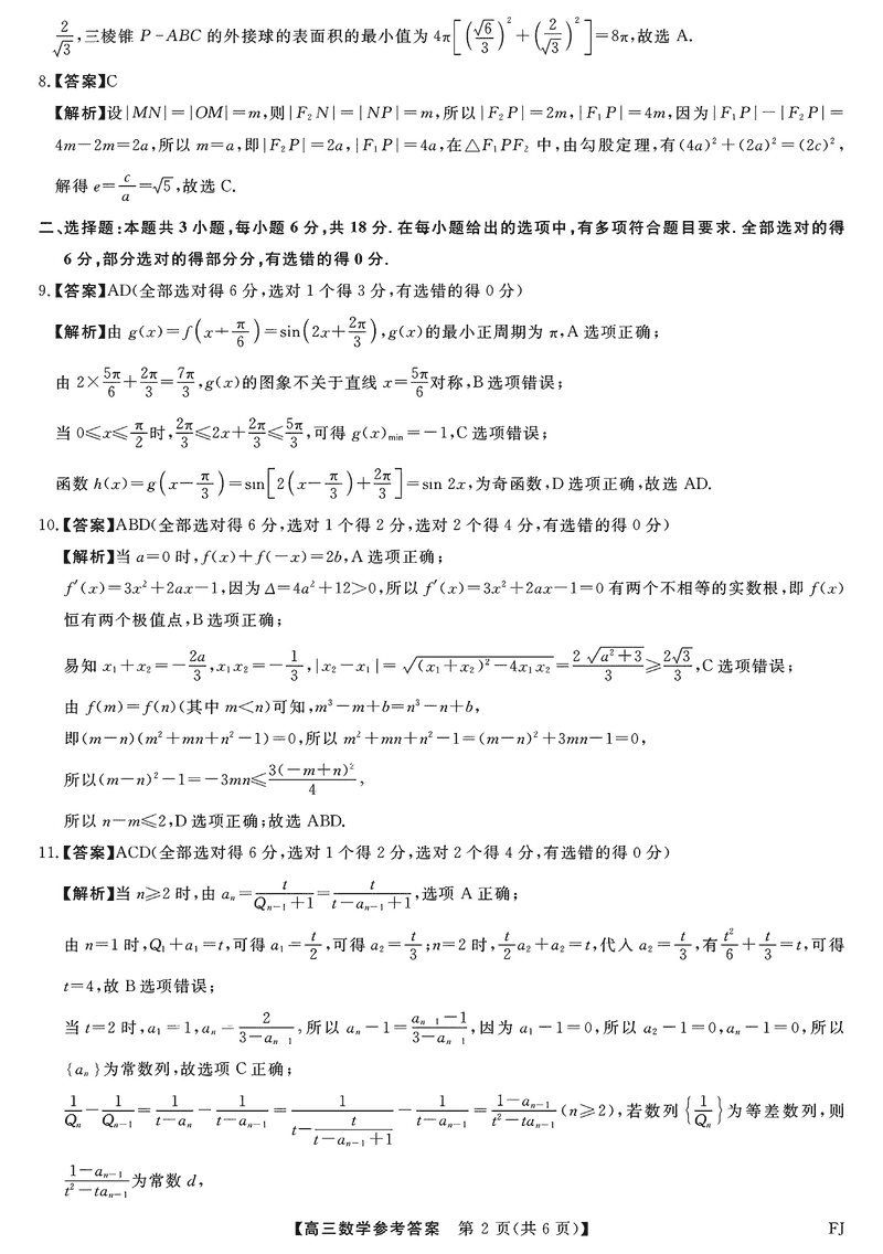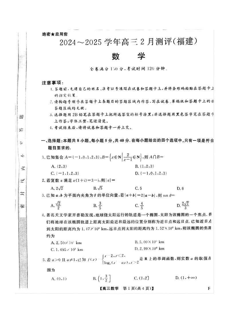 福建省金科大联考2025届高三2月开学联考数学试题及答案