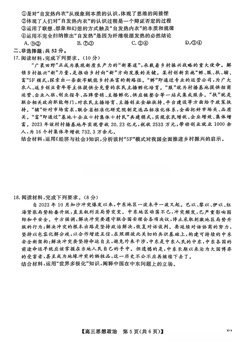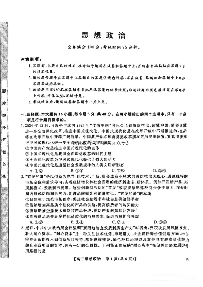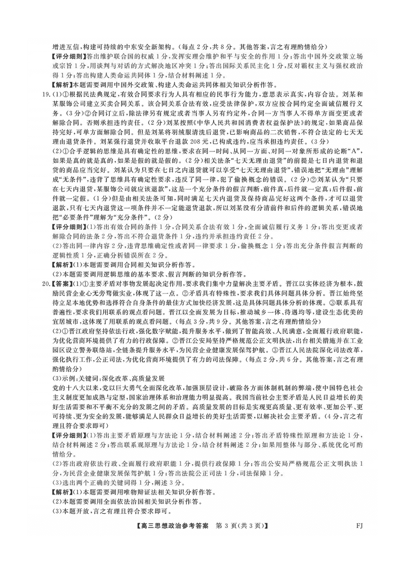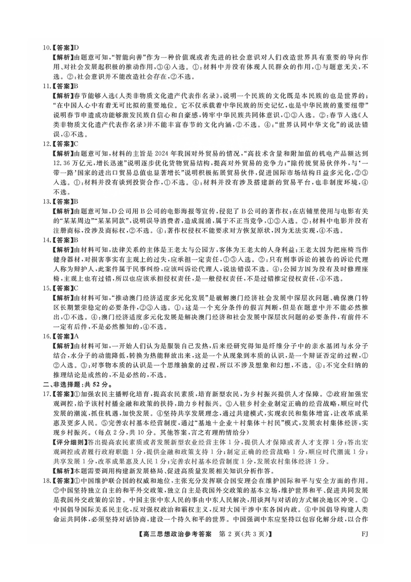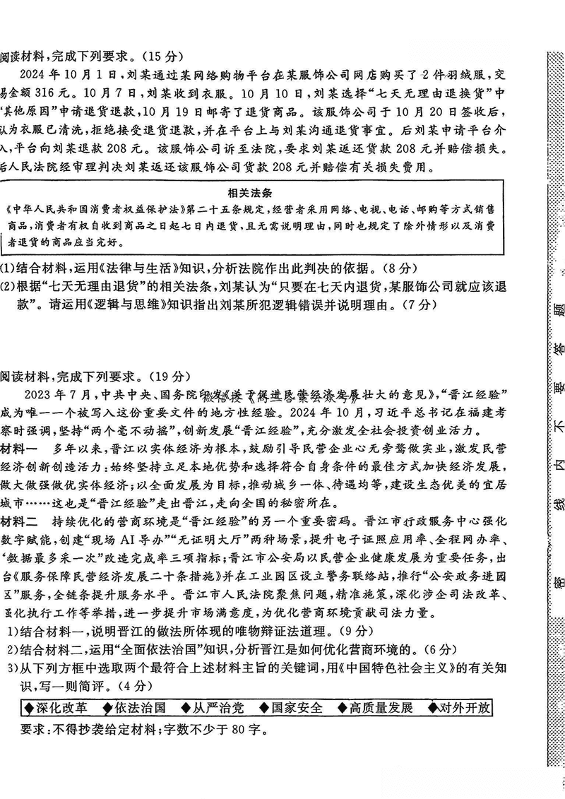 福建省金科大联考2025届高三2月开学联考政治试题及答案