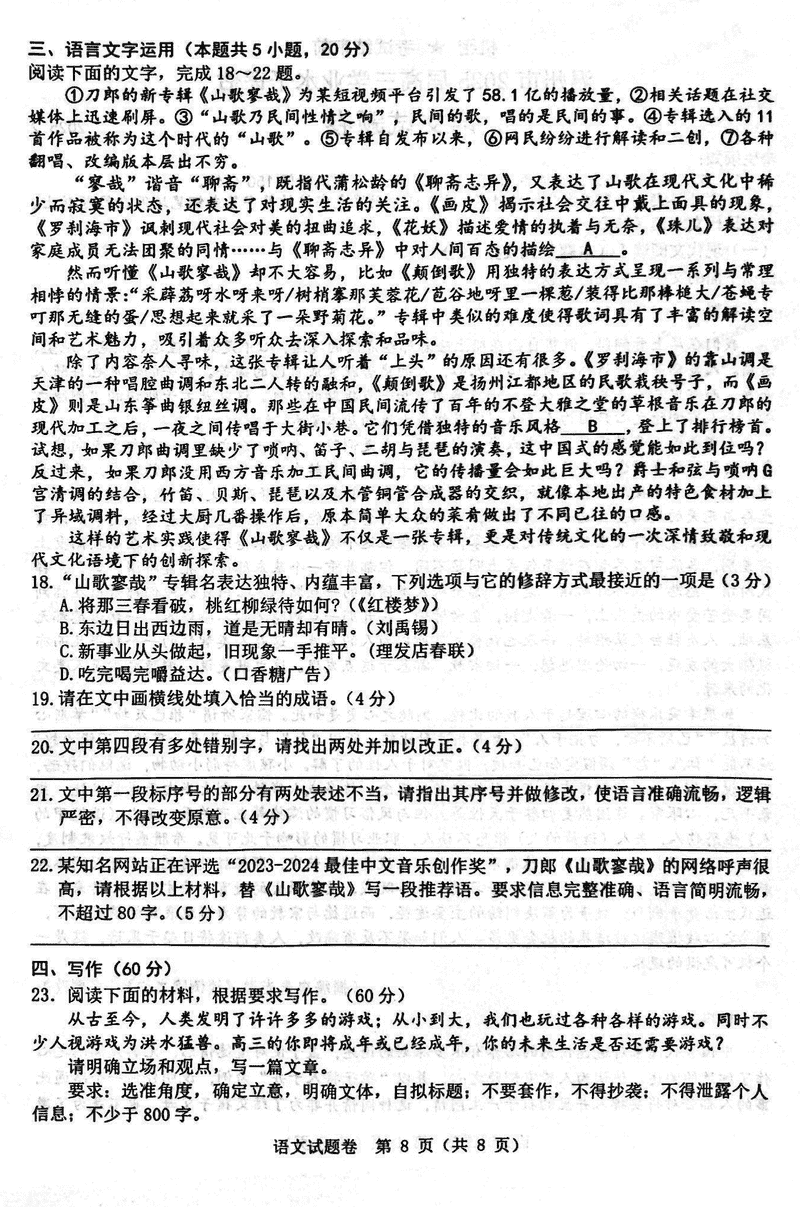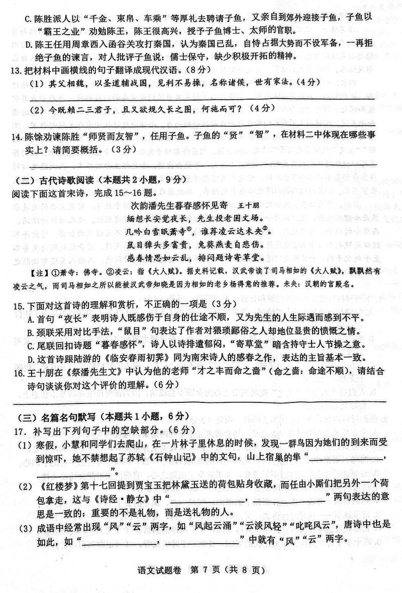 浙江 语文试题