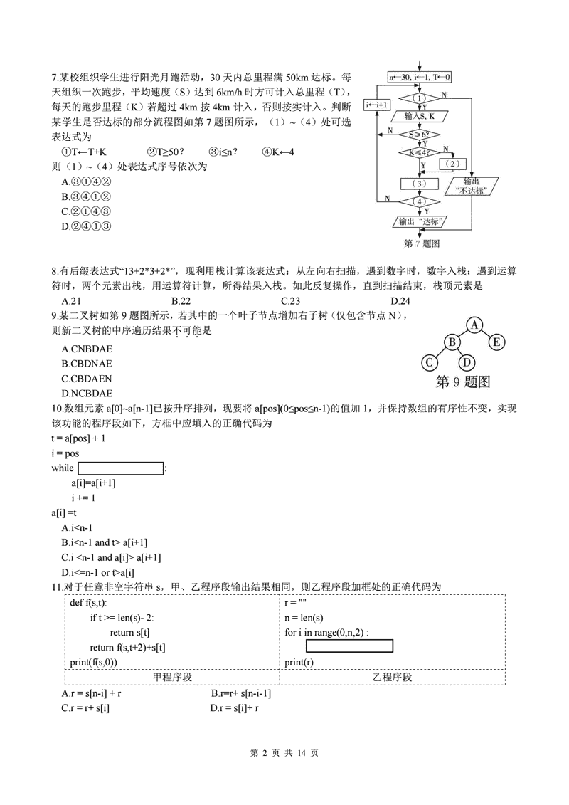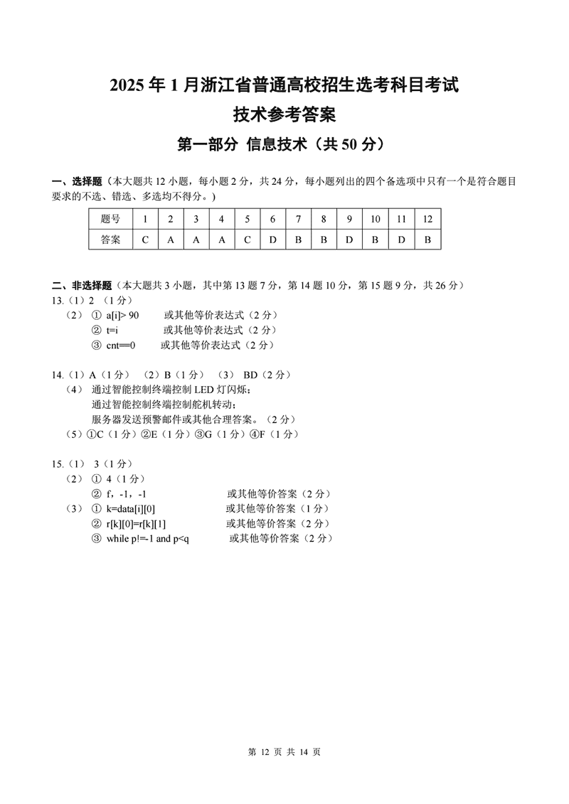 浙江首考2025年1月普通高等学校招生全国统考技术试题及答案