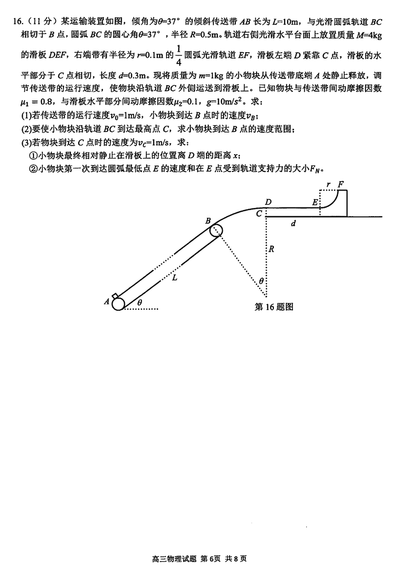 2025年2月浙江G12名校协作体高三返校考物理试题及答案
