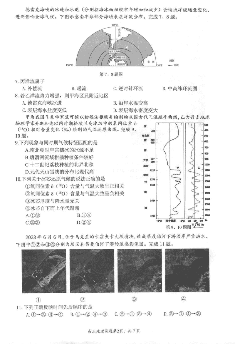 2025年2月浙江G12名校协作体高三返校考地理试题及答案