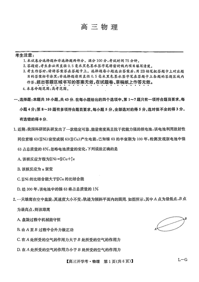 九师联盟2025届高三2月开学考物理试题及答案 时间:2025-02-16 理综试题 九师联盟2025届高三2月开学考物理考试已于近日开考,为方便考生考后及时查看考试情况,查漏补缺、弥补不足,本文整理了试题答案解析相关信息! 汇总:九师联盟2025届高三2月开学考试题及答案汇总 物理试题及答案解析