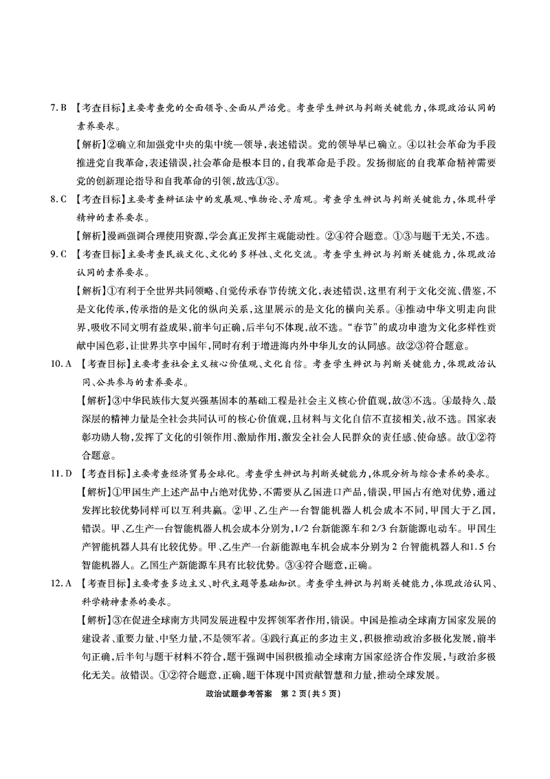 政治试题及答案解析