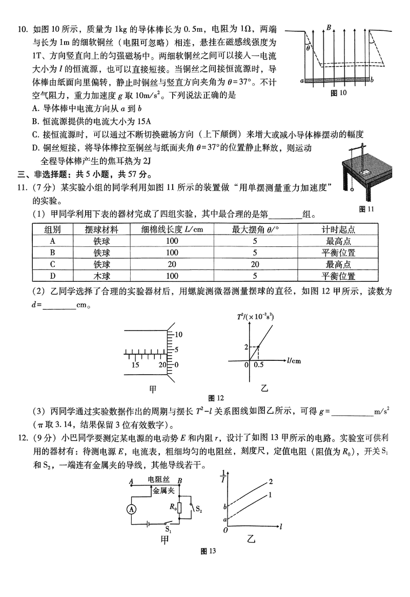 重庆 理综试题