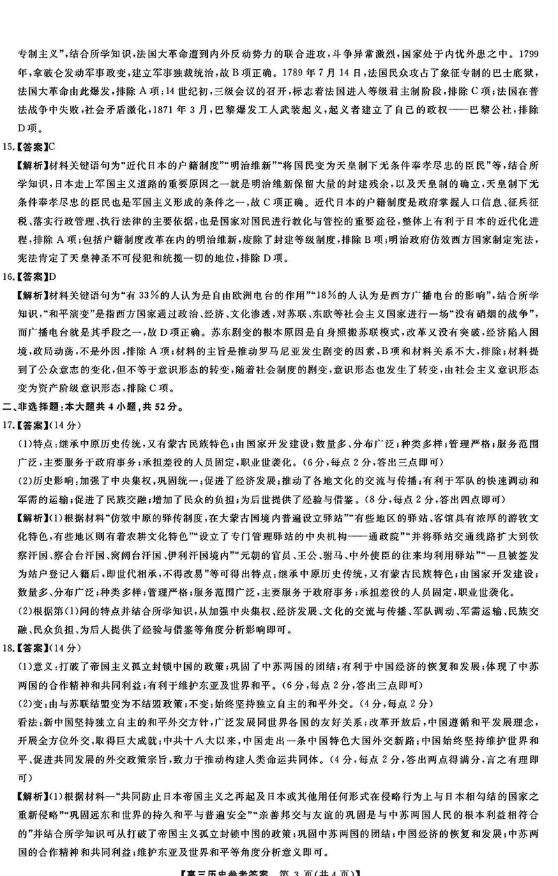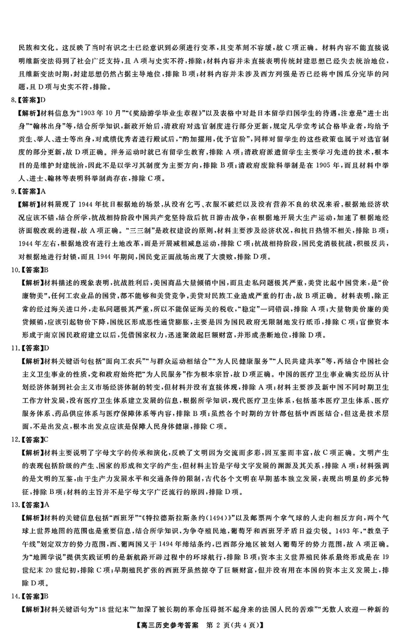 2025届金科大联考高三下学期2月质量检测历史试题及答案