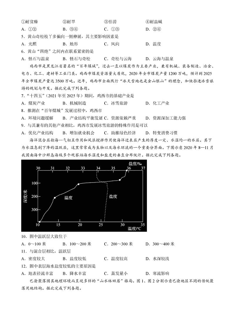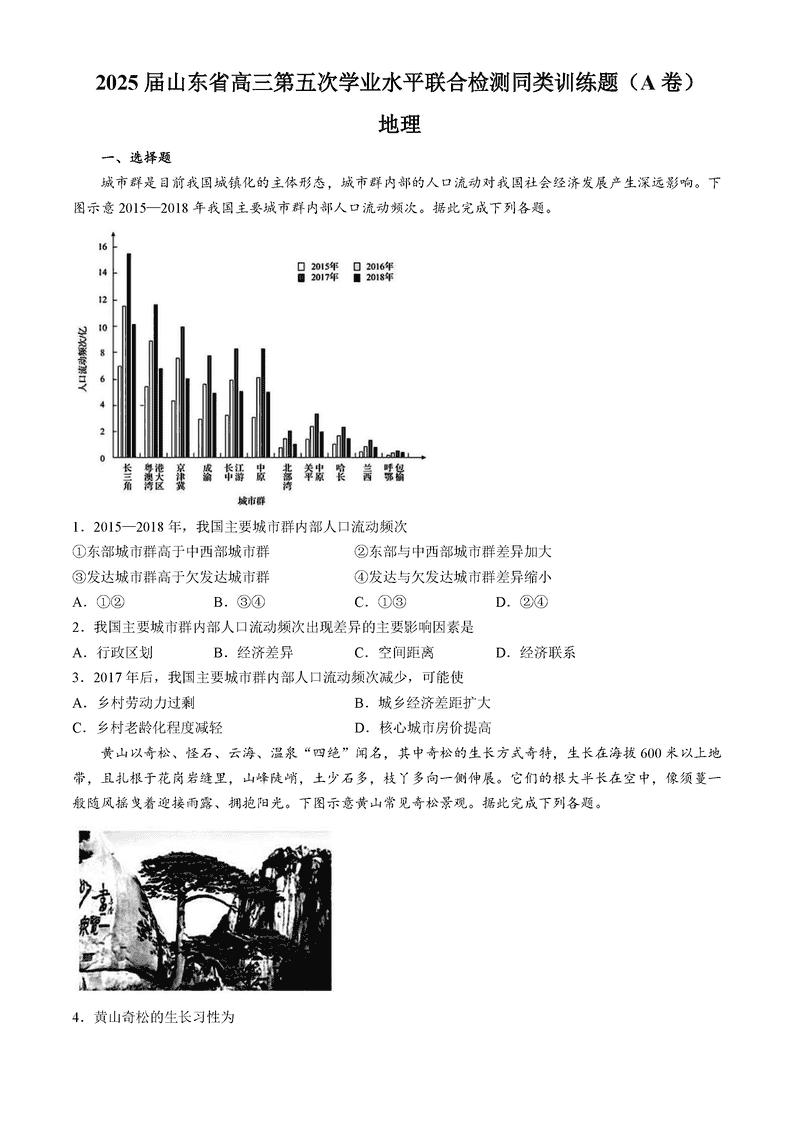 山东齐鲁名校2025届高三下学期第五次学业水平联合检测地理试题及答案