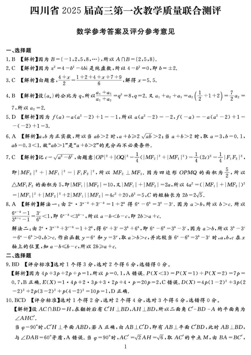 2025届四川省高三下学期第一次教学质量联合测评数学考试已于近日开考,为方便考生考后及时查看考试情况,查漏补缺、弥补不足,本文整理了试题答案解析相关信息!