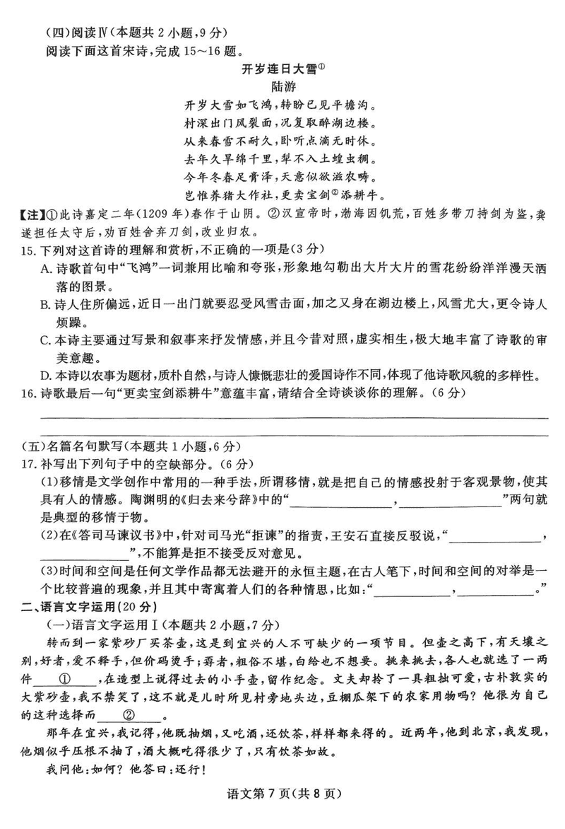 四川 语文试题