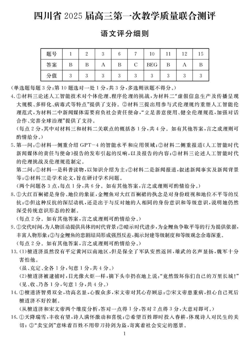 2025届四川省高三下学期第一次教学质量联合测评语文考试已于近日开考,为方便考生考后及时查看考试情况,查漏补缺、弥补不足,本文整理了试题答案解析相关信息!