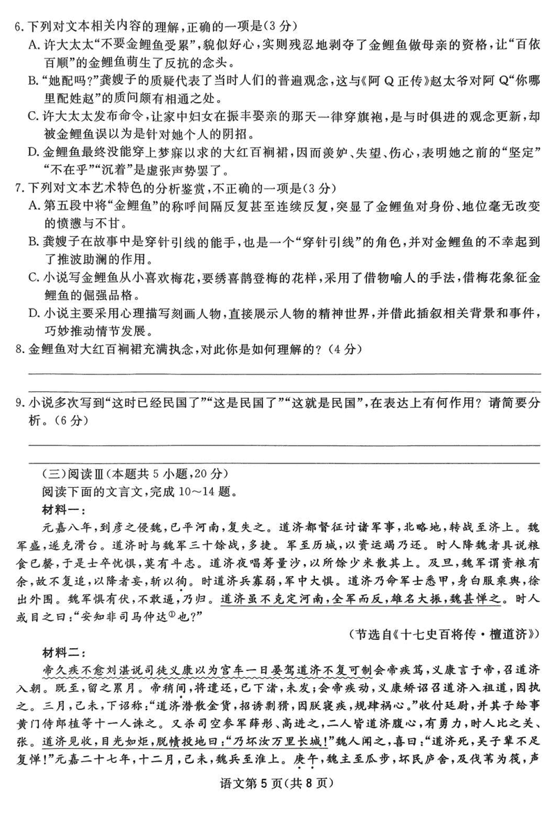 语文试题及答案解析
