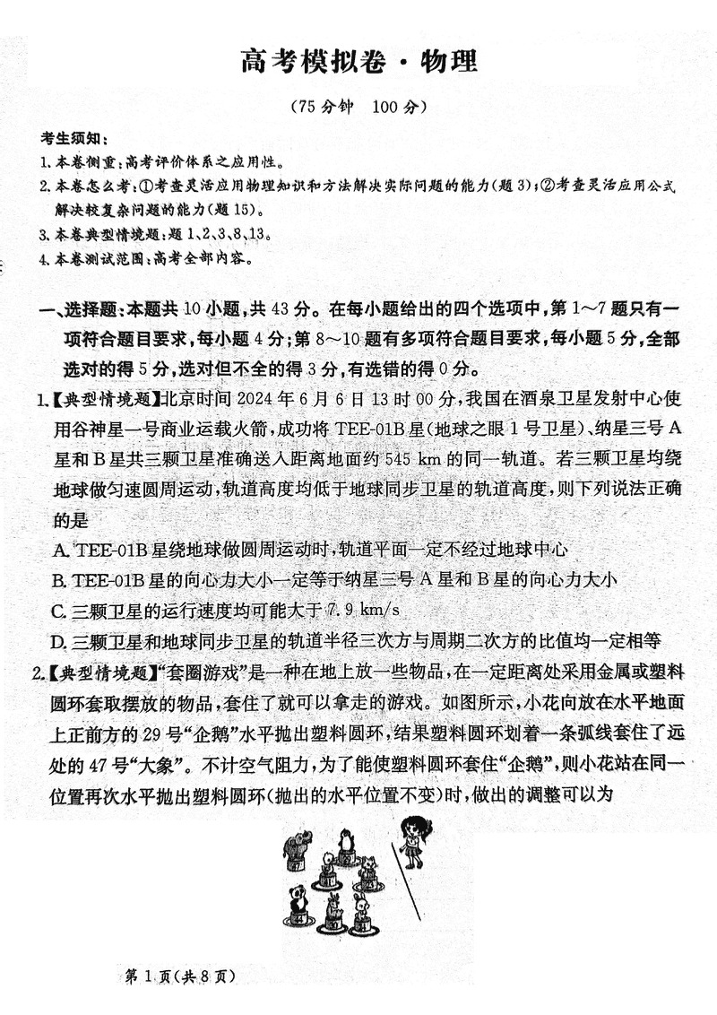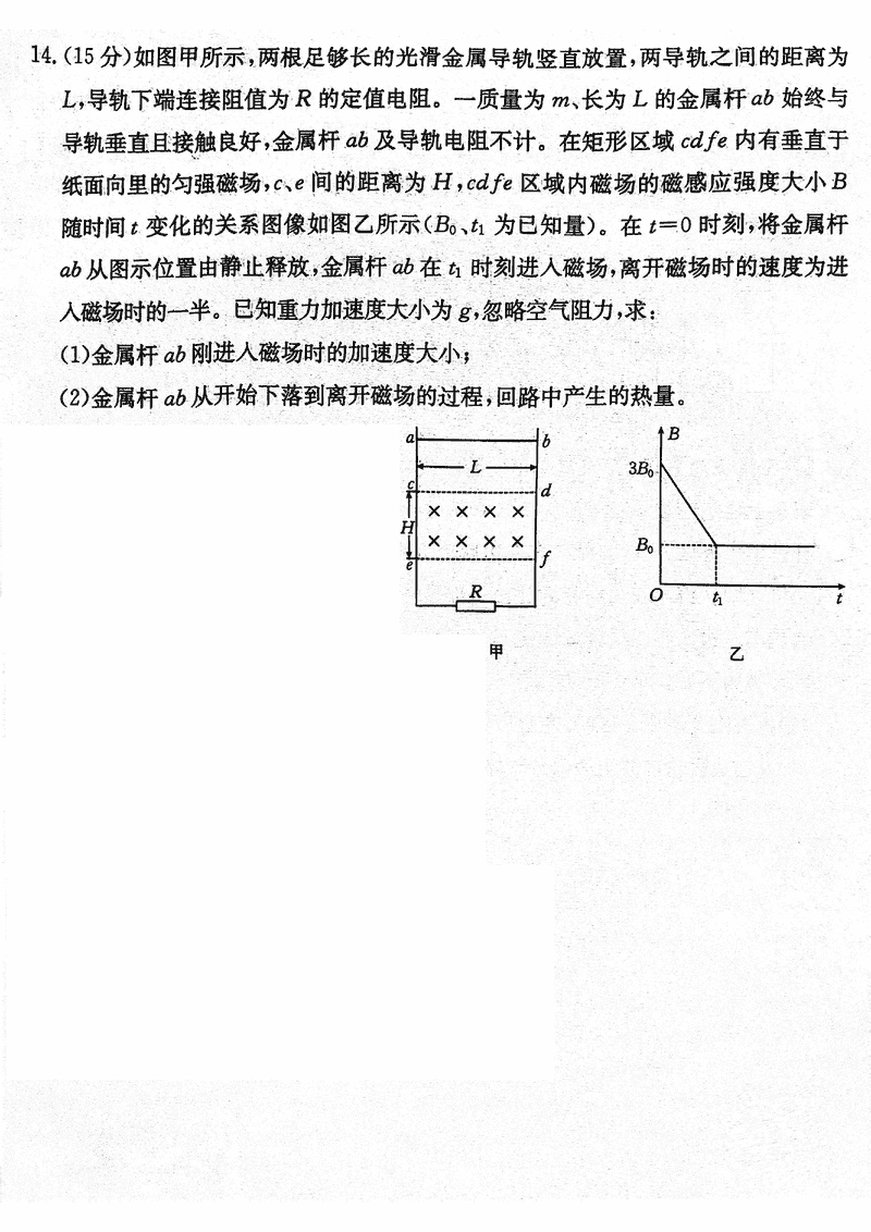 甘肃省2025届高三下学期高考模拟卷物理试题及答案