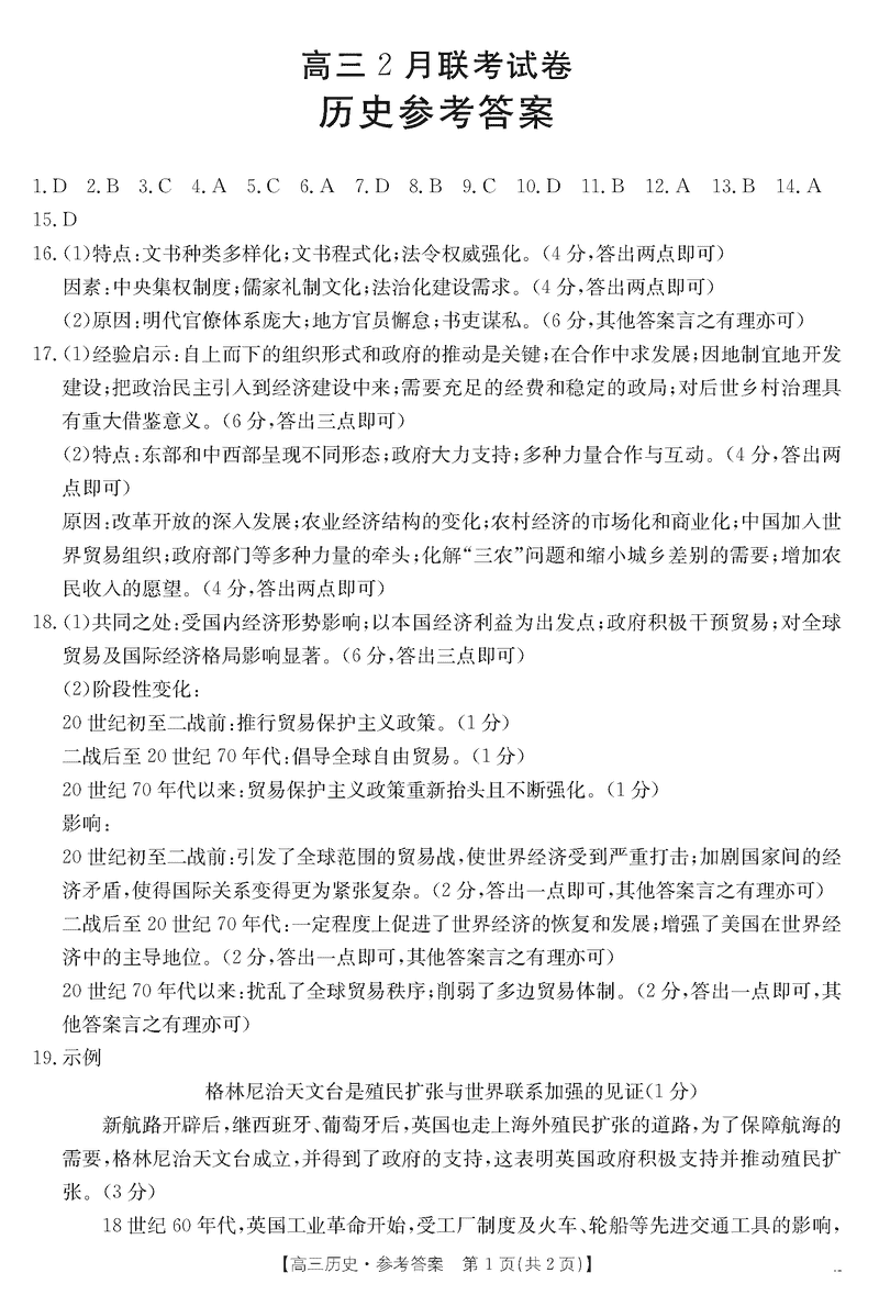 湖北鄂东新领先协作体2025届高三下学期2月联考历史考试已于近日开考,为方便考生考后及时查看考试情况,查漏补缺、弥补不足,本文整理了试题答案解析相关信息!